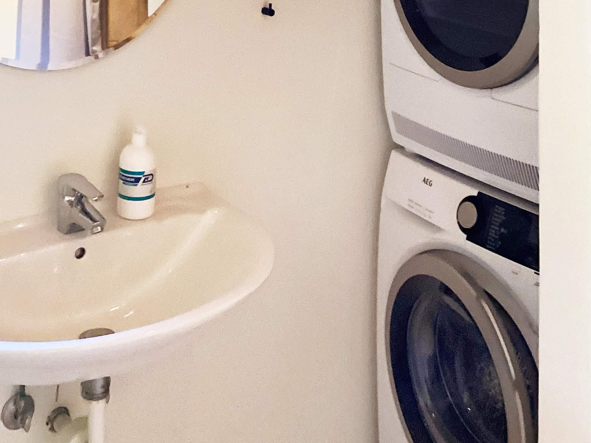 Bad/wc: Vaskemask., tørretumbler, wc, håndvask, bruser, gulvvarme