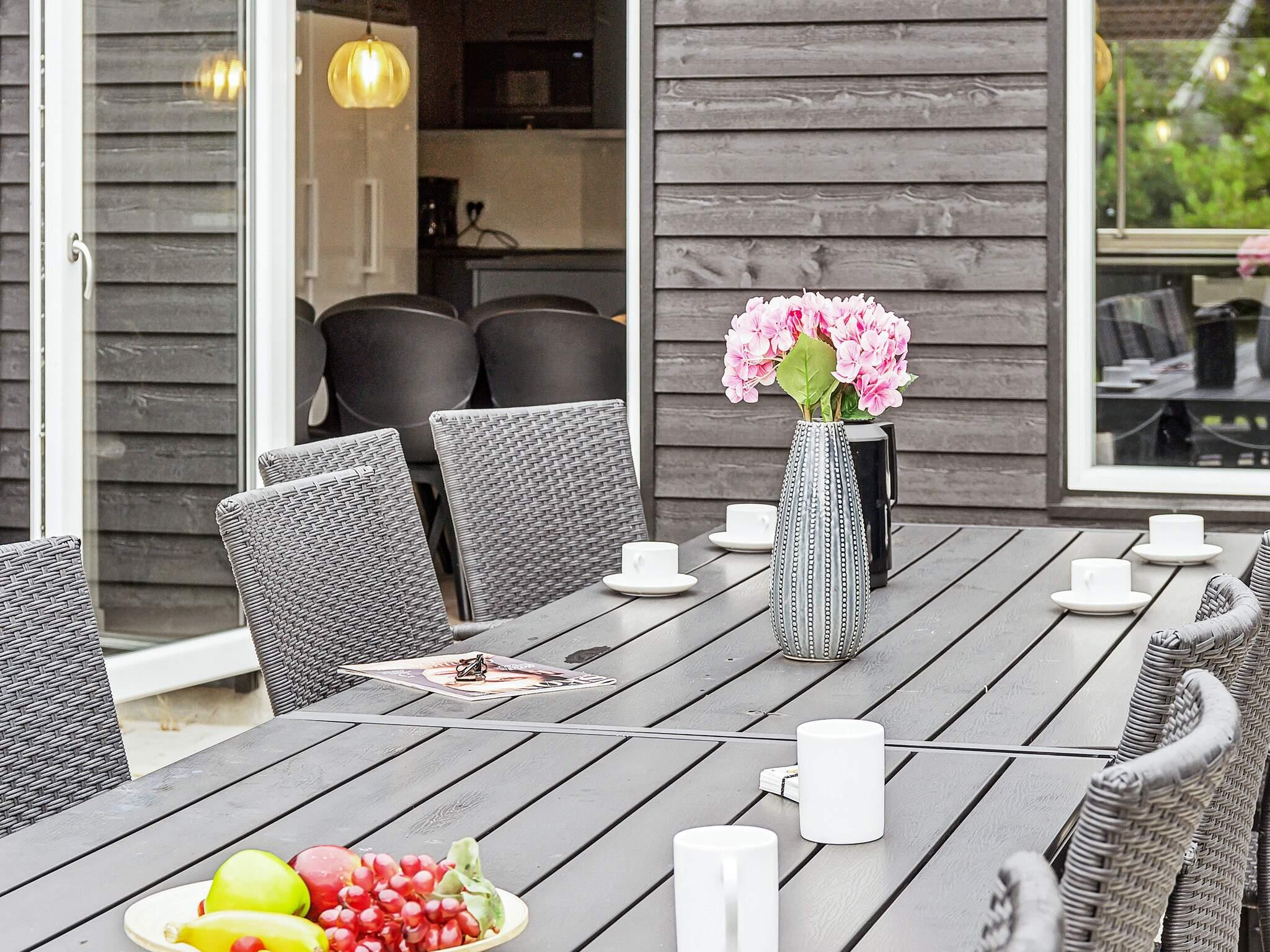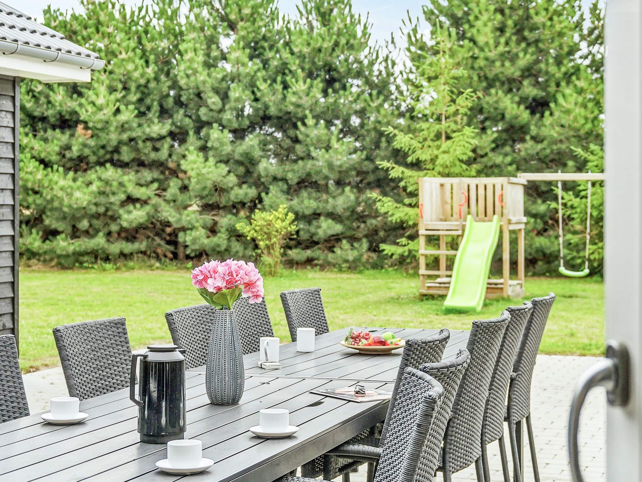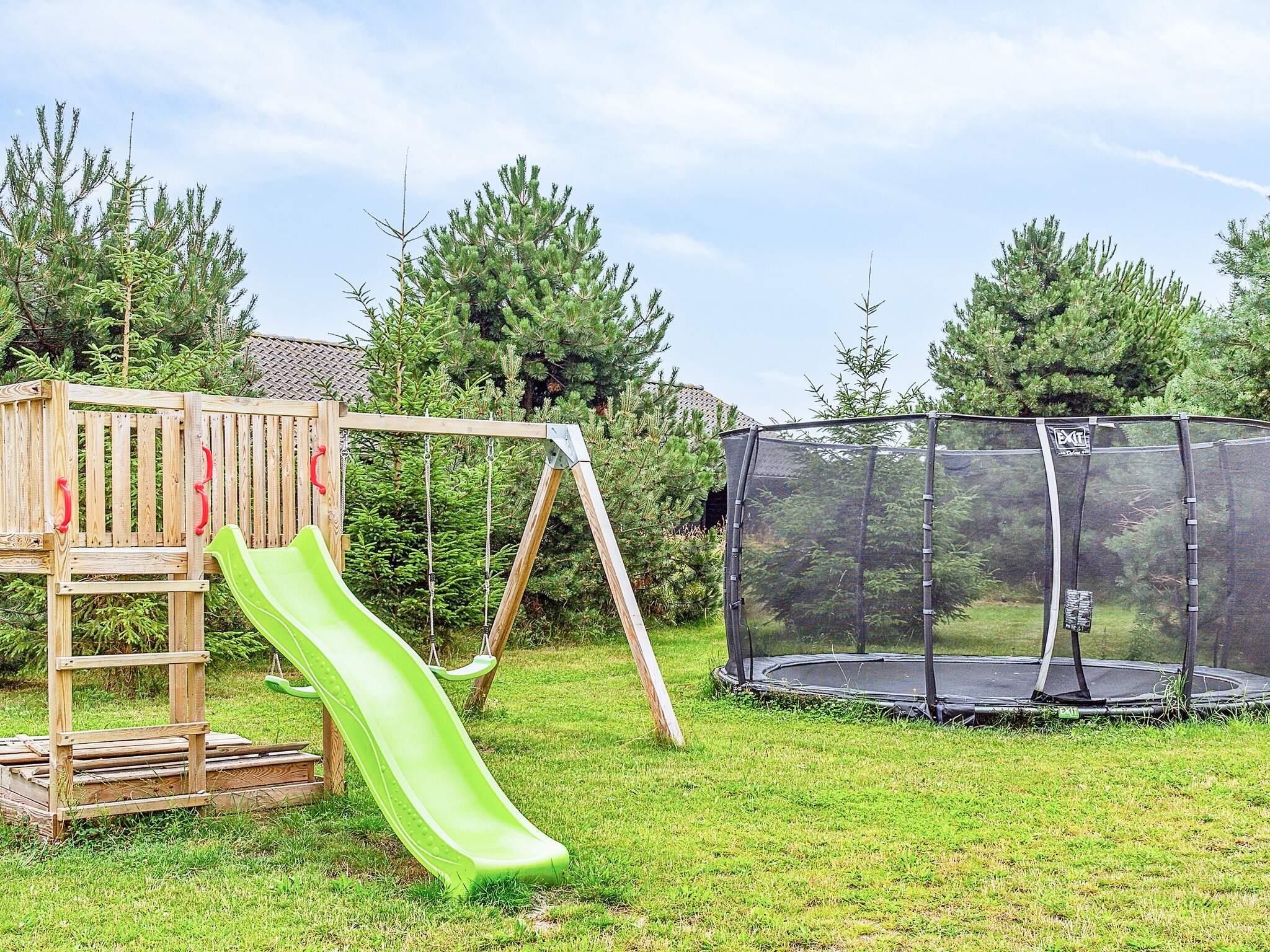 Fra køkkenet kan I gå direkte ud på sommerhusets delvist overdækkede terrasse med grill og havemøbler, som er perfekt til en hyggelig grillaften eller afslapning i sommersolen. I haven er der en gynge, sandkasse, legetårn, fodboldmål, rebounder og en trampolin til børnene (bruges på eget ansvar/forsikring). Huset ligger på en lukket og ugenert grund for enden af ??lukket vej.