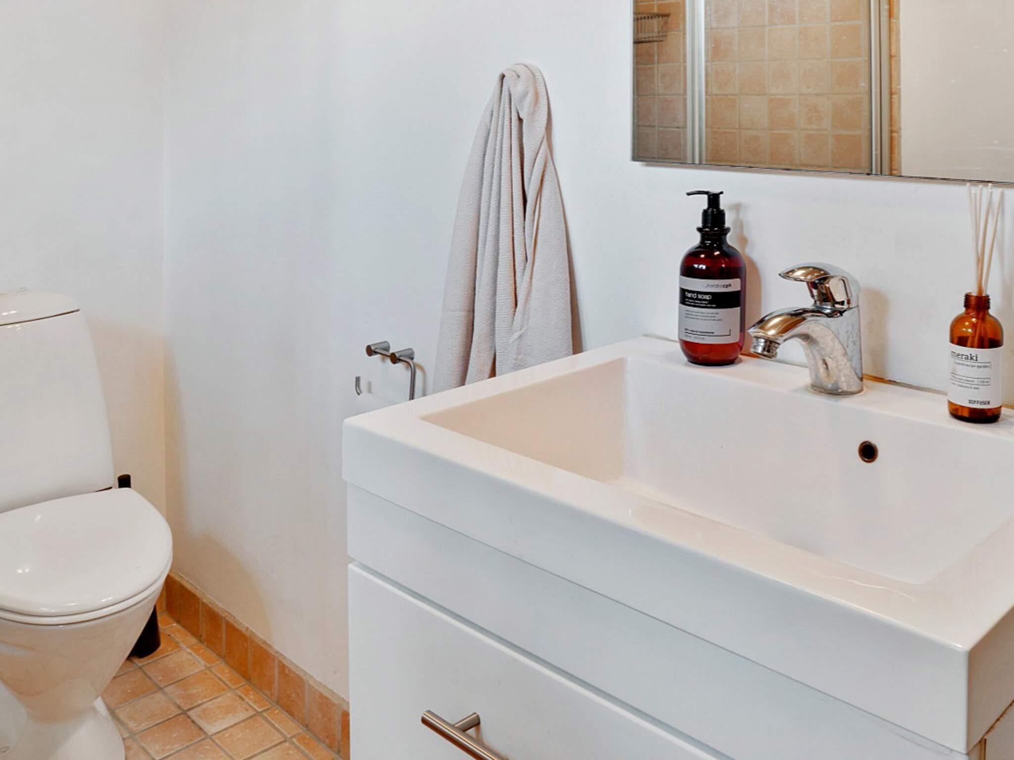 Bad/wc: Vaskemaskine, wc, håndvask, bruser
