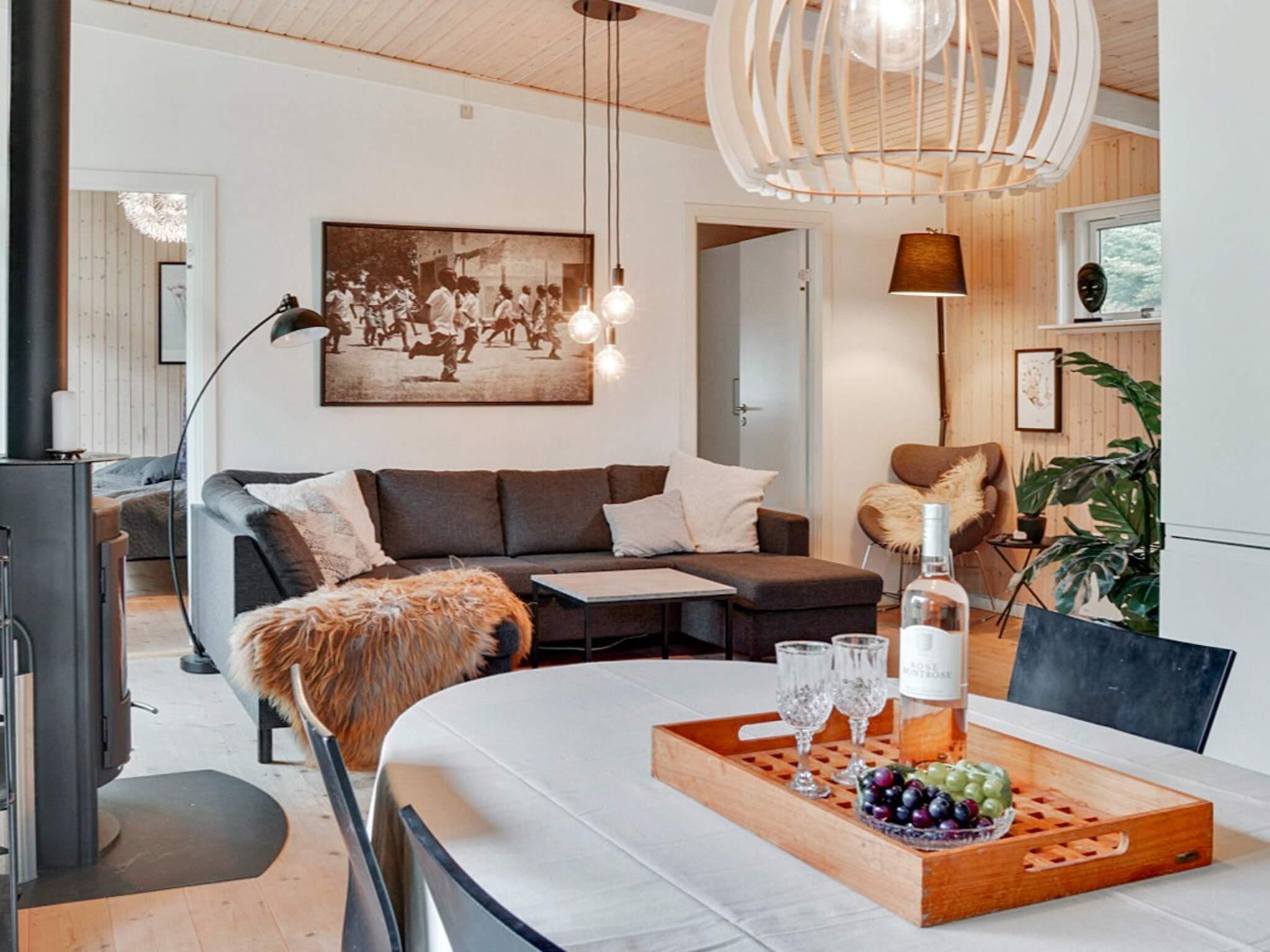 Flygt til dette arkitekttegnede sommerhus i Marielyst, hvor moderne komfort møder hyggelig charme. Med en stor brændeovn, en rummelig stue og en høj stol til de mindste er dette det perfekte tilflugtssted for familier. Opholdsstuen er lys og luftig og åbner ind til et fuldt udstyret køkken med elkomfur, ovn, køle-fryseskab, mikroovn og opvaskemaskine. Huset har tre velindrettede soveværelser og et anneks, som giver komfortable sovepladser til op til otte personer. Der er også en barneseng til de yngste gæster, så der er sørget for, at der er plads til alle.
