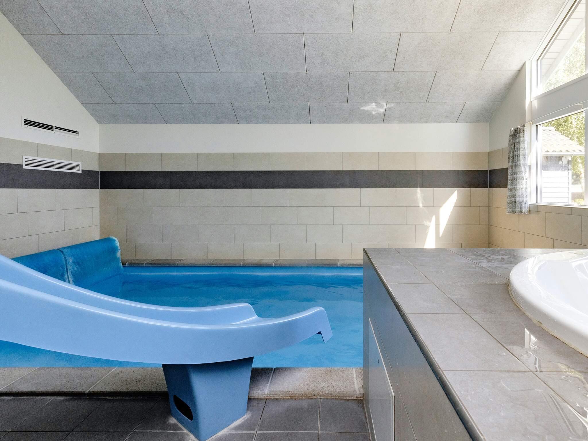 Husets poolafdeling indeholder både stor swimmingpool, svømmetræner, stort indbygget spabad og sauna med plads til 6 personer. Swimmingpoolen er på 18 m² og med rutschebane til børnene.
