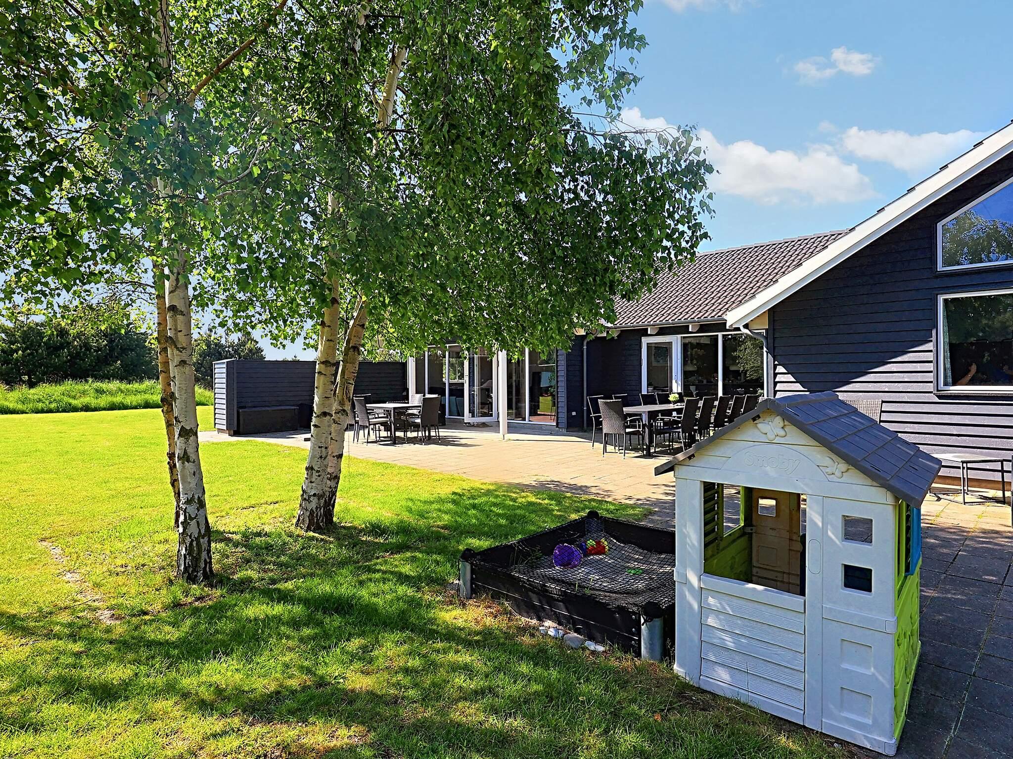 Skulle vejret lokke til udendørsaktiviteter er der både dart, volleyballnet, fodboldmål, legetårn, sandkasse, skak og trampolin (benyttes på eget ansvar/forsikring) samt mange andre spil. Derudover trækvogn som f.eks. kan bruges på turene til stranden. På den bageste del af grunden er der opført et shelter med plads til 6 personer samt en bålplads.