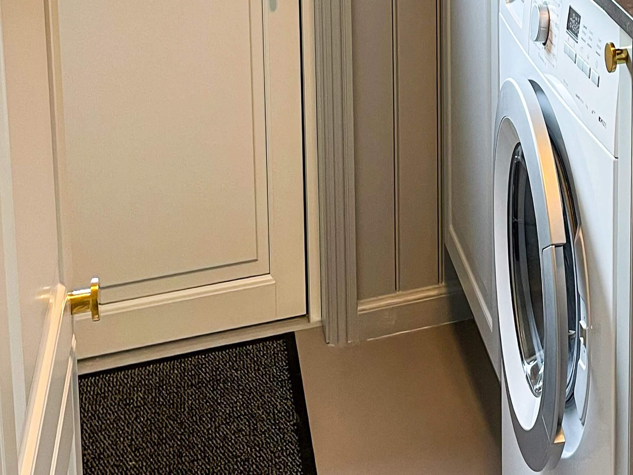Køkken: Køle-frys, induktionskomfur, kaffemaskine, opvaskemask.