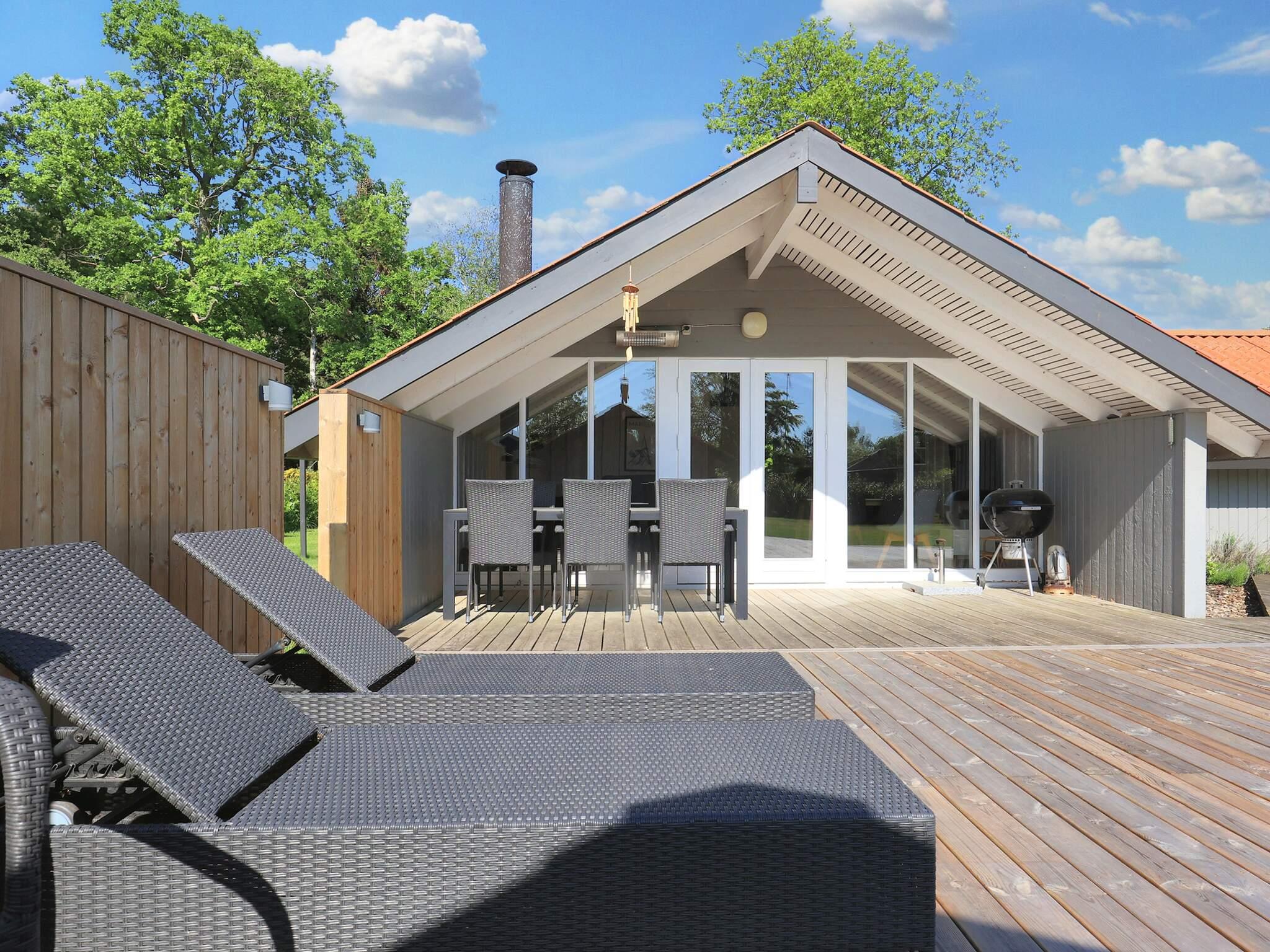 Udenfor byder ejendommen på en rummelig grund med plads til boldspil og hygge i den friske luft. Den møblerede terrasse er ideel til udendørs spisning, solbadning eller blot afslapning, og der er en kulgrill til hyggelige grillaftener.