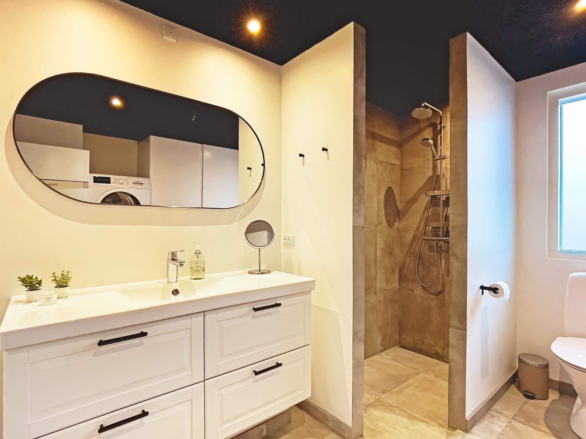 Bad/wc: Vaskemask., tørretumbler, wc, håndvask, bruser