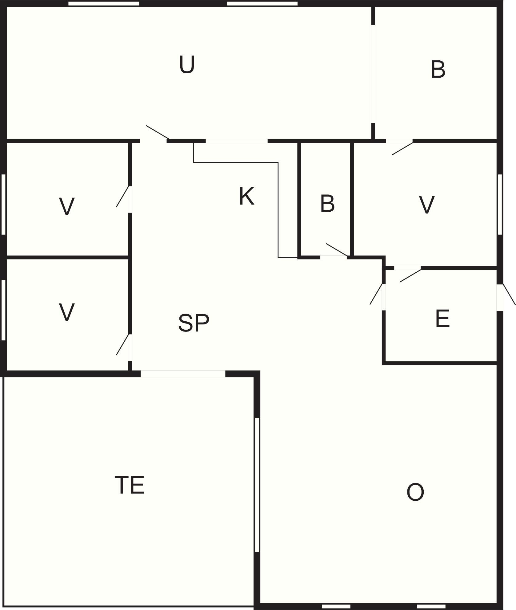 Det rummelige sommerhus med indendørs spabad inviterer dig til at nyde mange dejlige og hyggelige stunder. Huset har to soveværelser med dobbeltsenge (hvoraf det ene kan opdeles i to enkeltsenge) og et soveværelse med to enkeltsenge. I stuen er der en enkeltseng på en daybed. Husets store badeværelse byder udover toilet og bruser med regnbruser på et 2-personers spabad. Der er endnu et badeværelse i huset, med toilet og bruser med regnbruser.