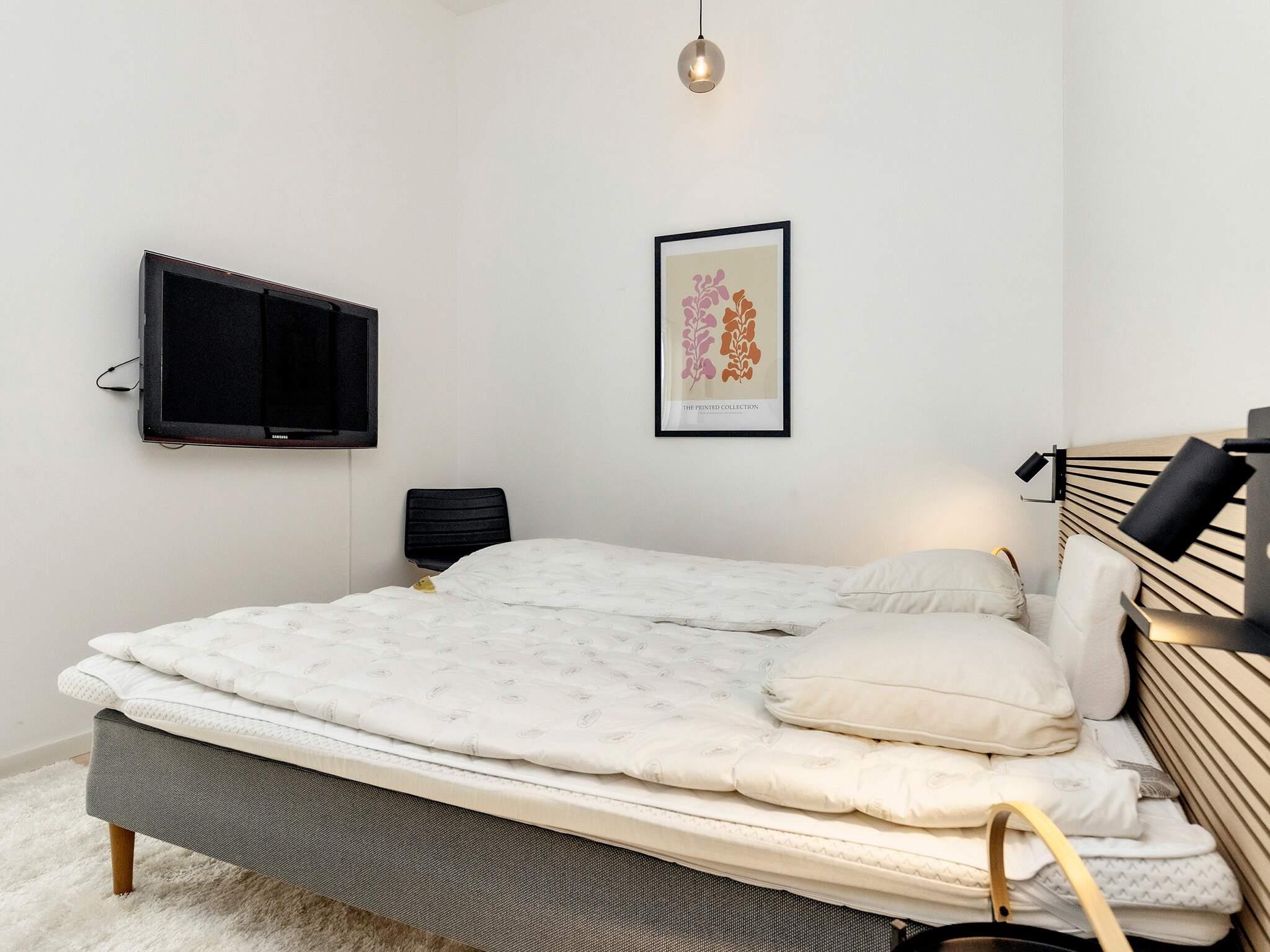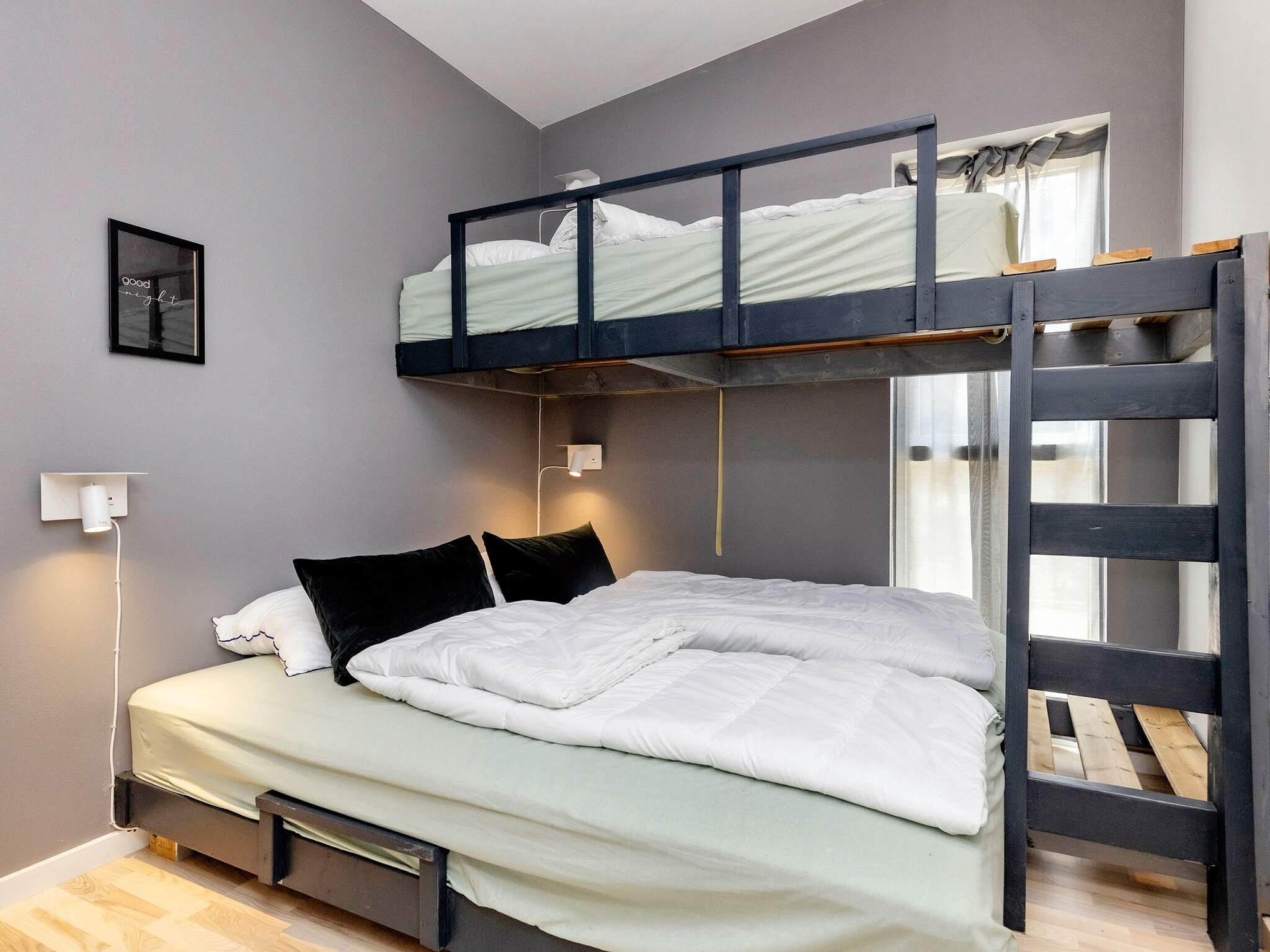 Huset har tre soveværelser, det ene med dobbeltseng, det andet med dobbeltseng og tv med Chromecast og PlayStation 4. Det tredje soveværelse har tre køjesenge, to i bunden og en øverst.