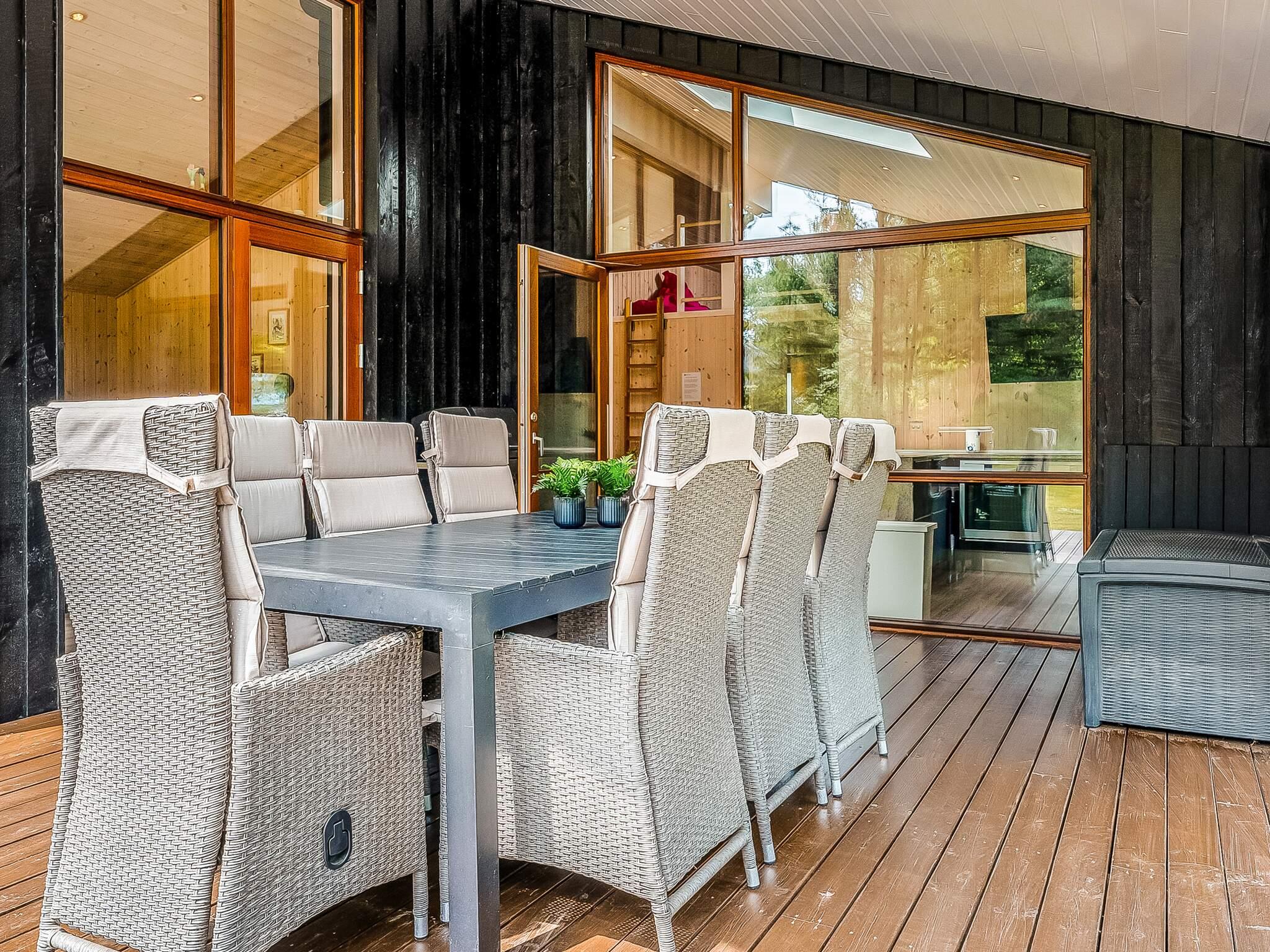 Nyd solen på terrassen i havemøblerne eller i liggestolene, og når aftenen nærmer sig, kan du forlænge aftenens hygge under den overdækkede terrasse, mens du fremtryller et lækkert måltid på gasgrillen.