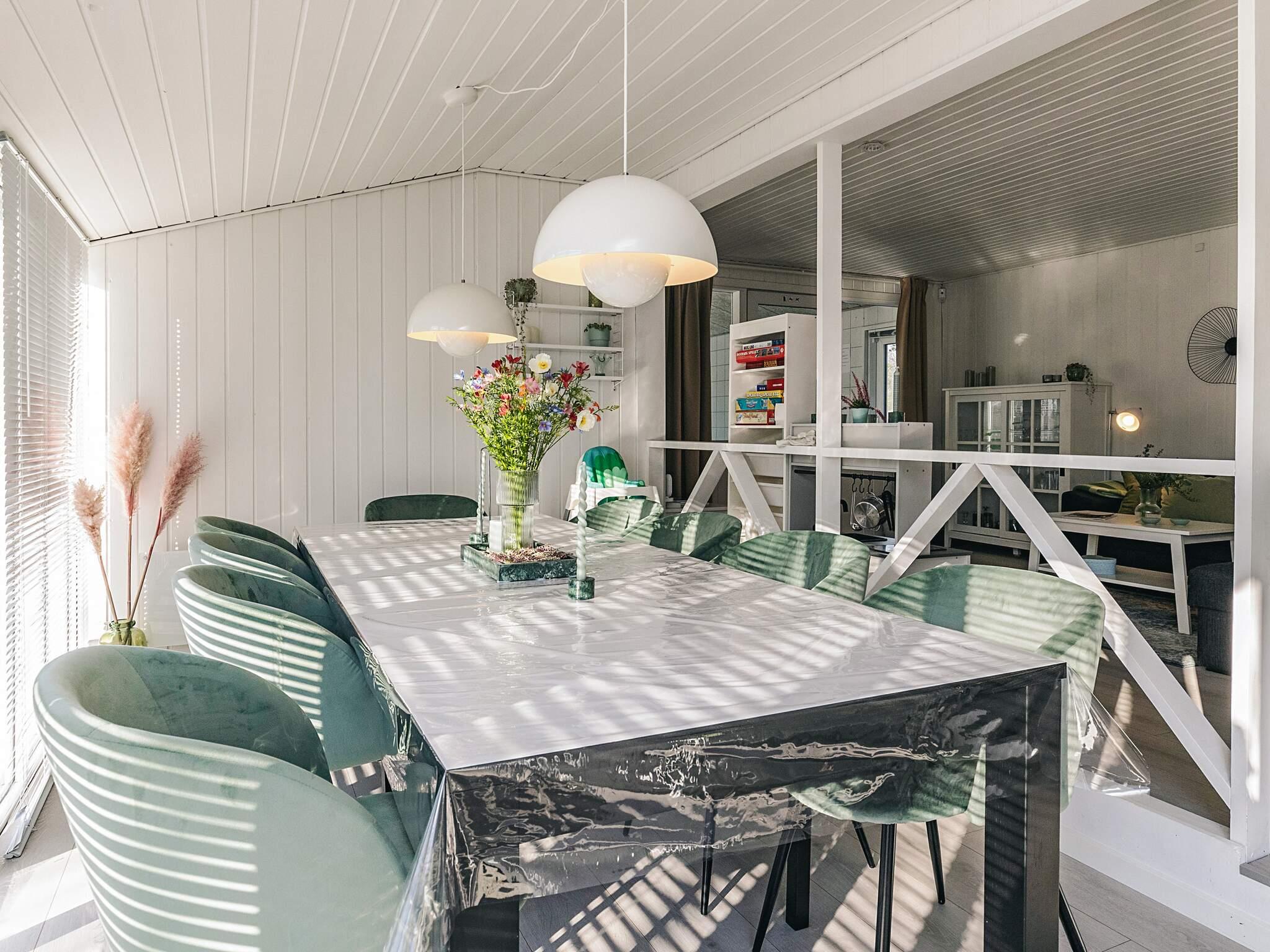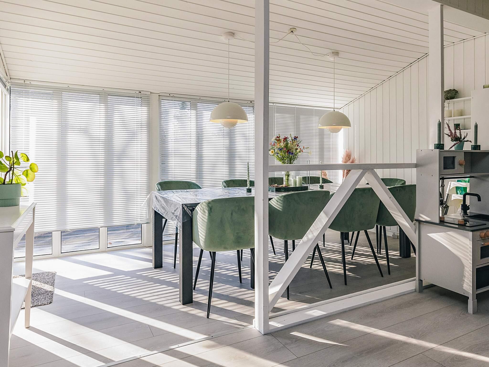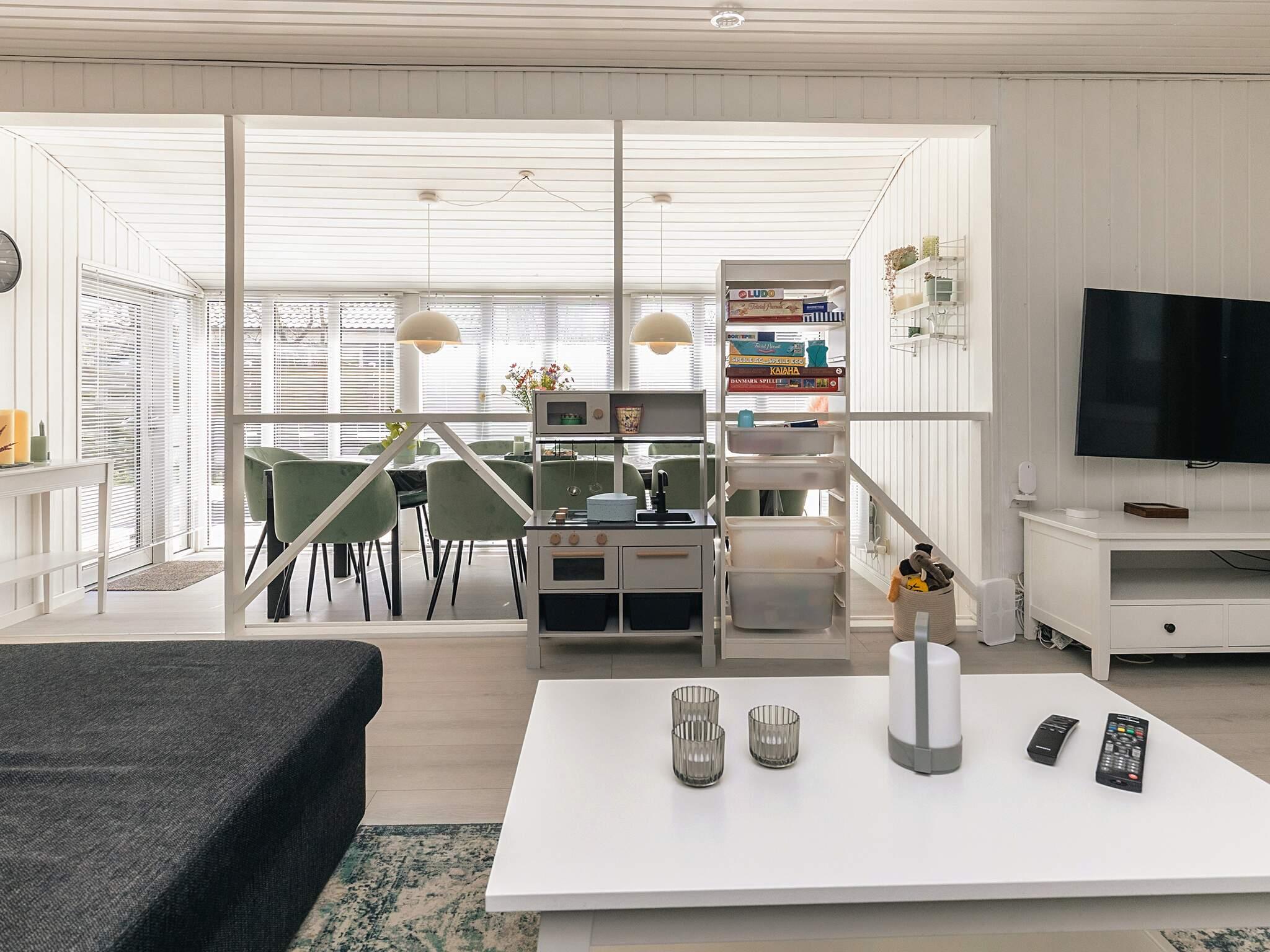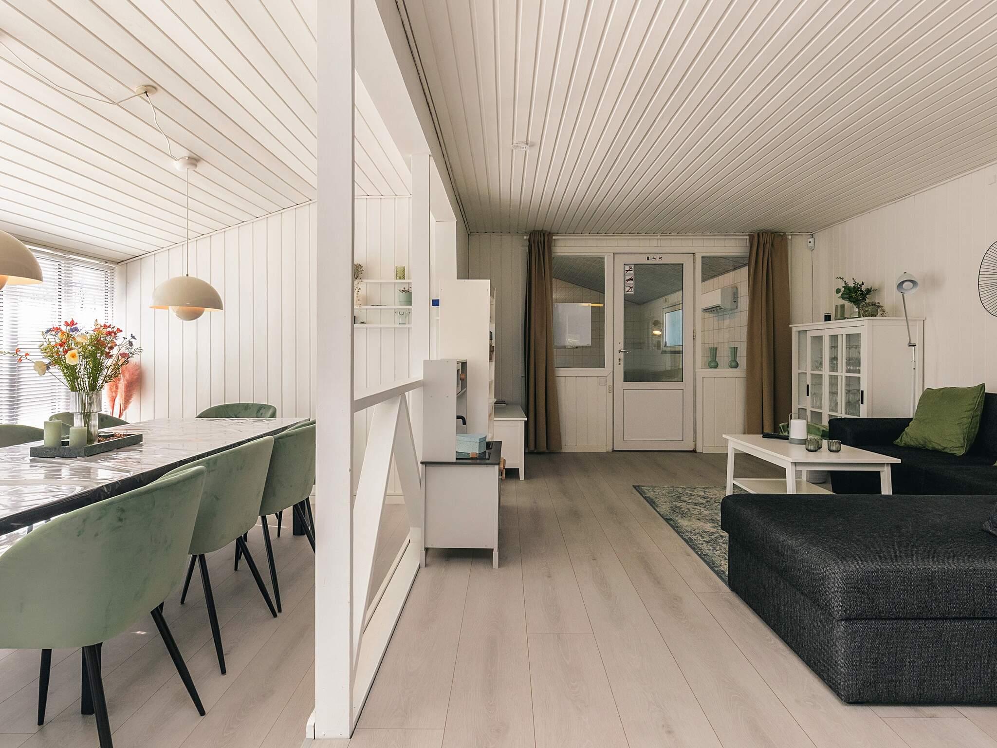 Fra det åben køkken går I direkte ind i spiseområdet og husets opholdsstue, som er udstyret med smart- tv og internet. Desuden forefindes der varmepumpe i spise og opholdstue.