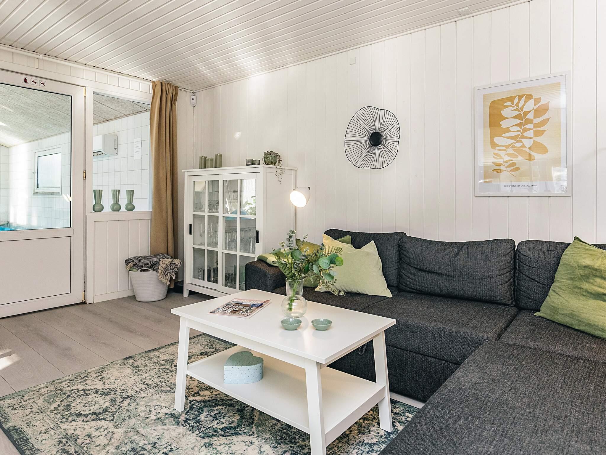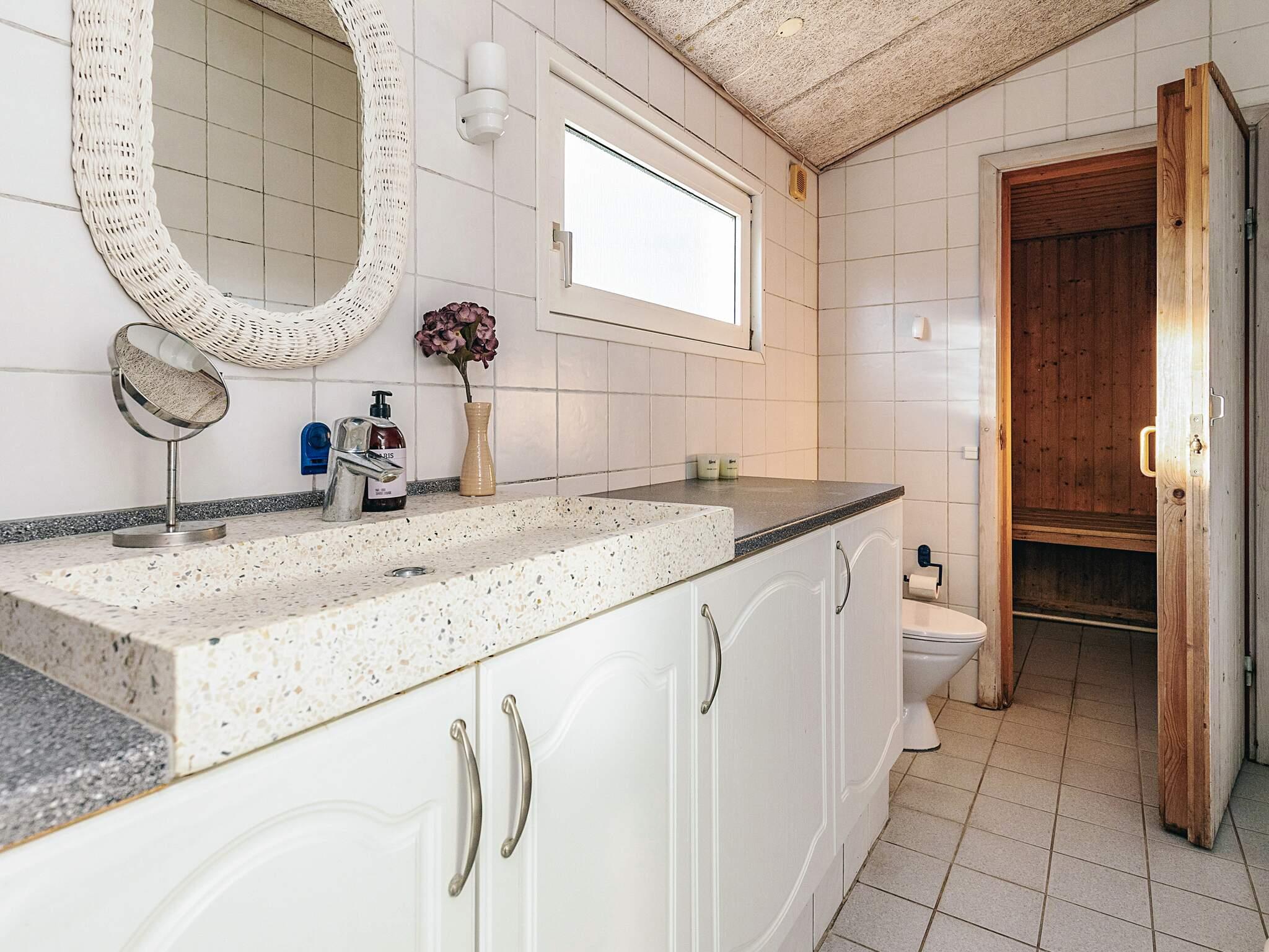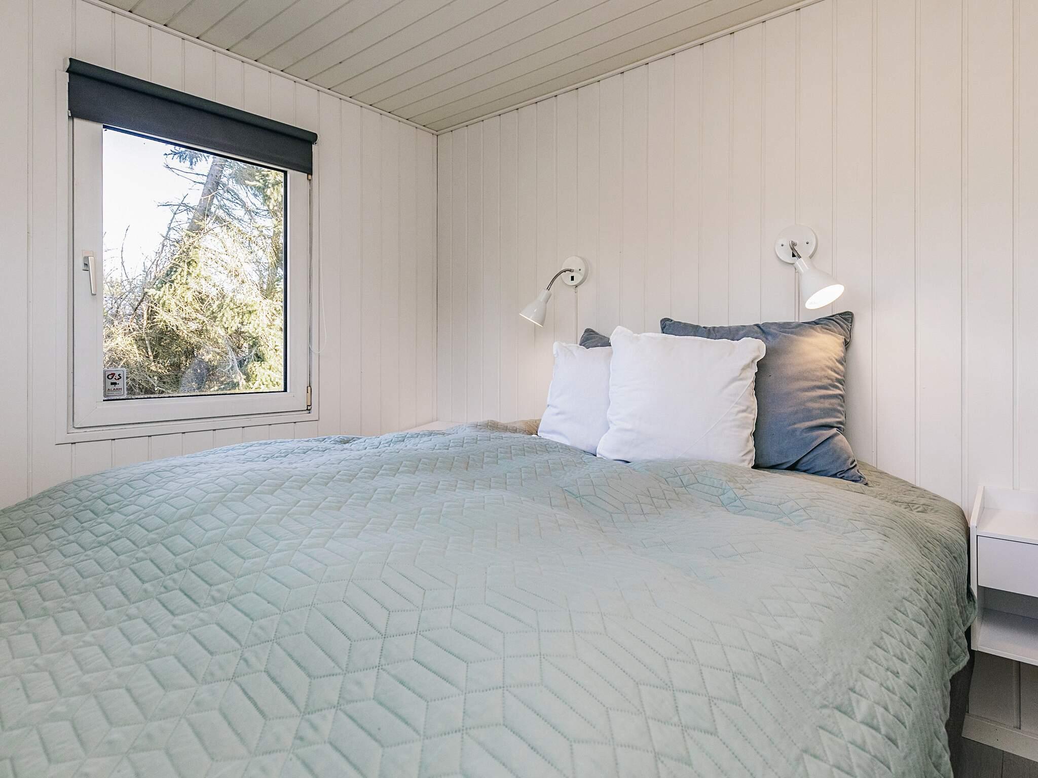 Sommerhuset er indrettet med fire soveværelser hvoraf tre af dem med dobbeltseng og et værelse med køjesenge med plads til tre personer. Der er to badeværelser med toilet, bruser,håndvask samt gulvvarme, på det ene er der desuden vaskemaskine og tørretumbler.