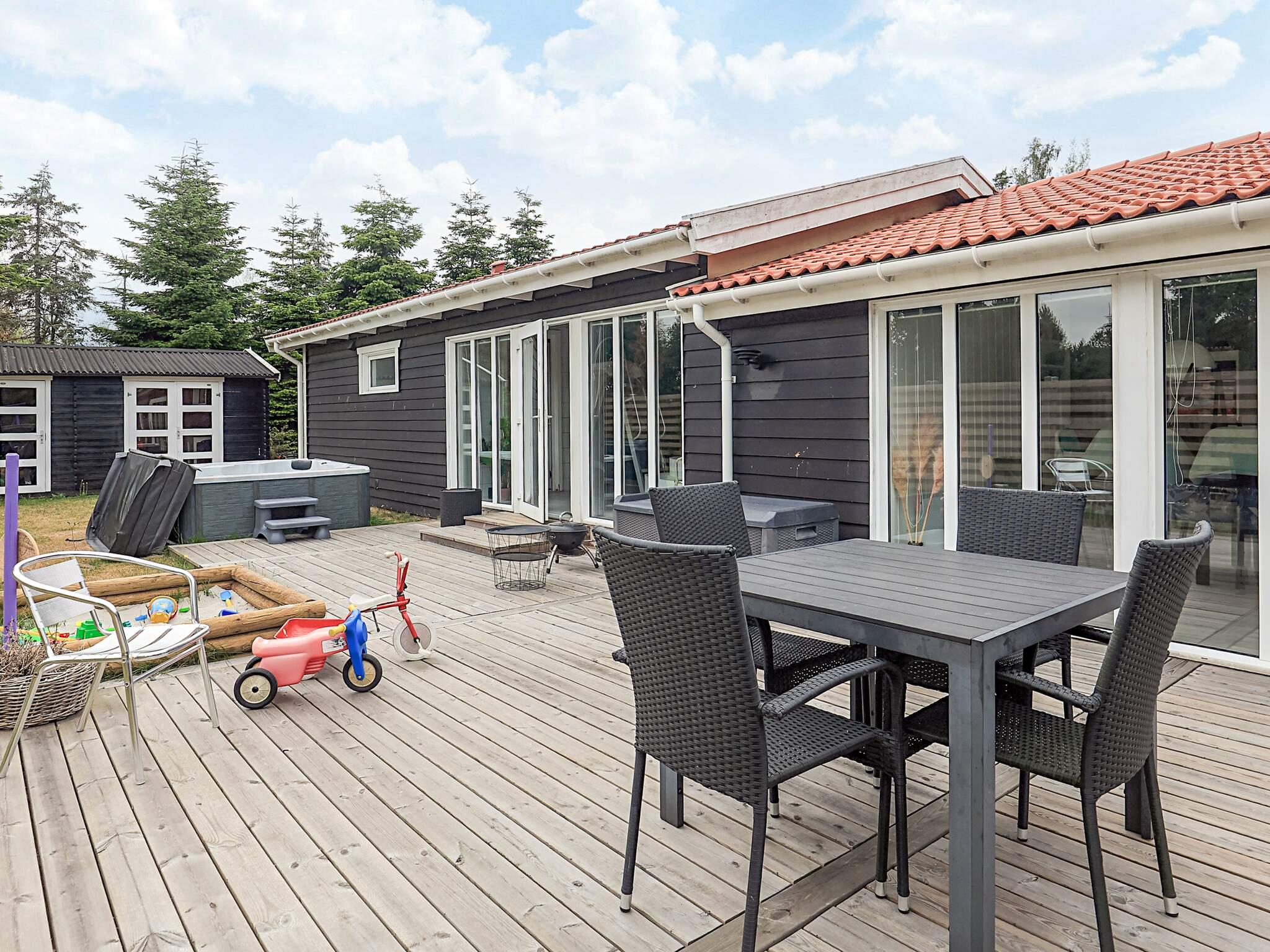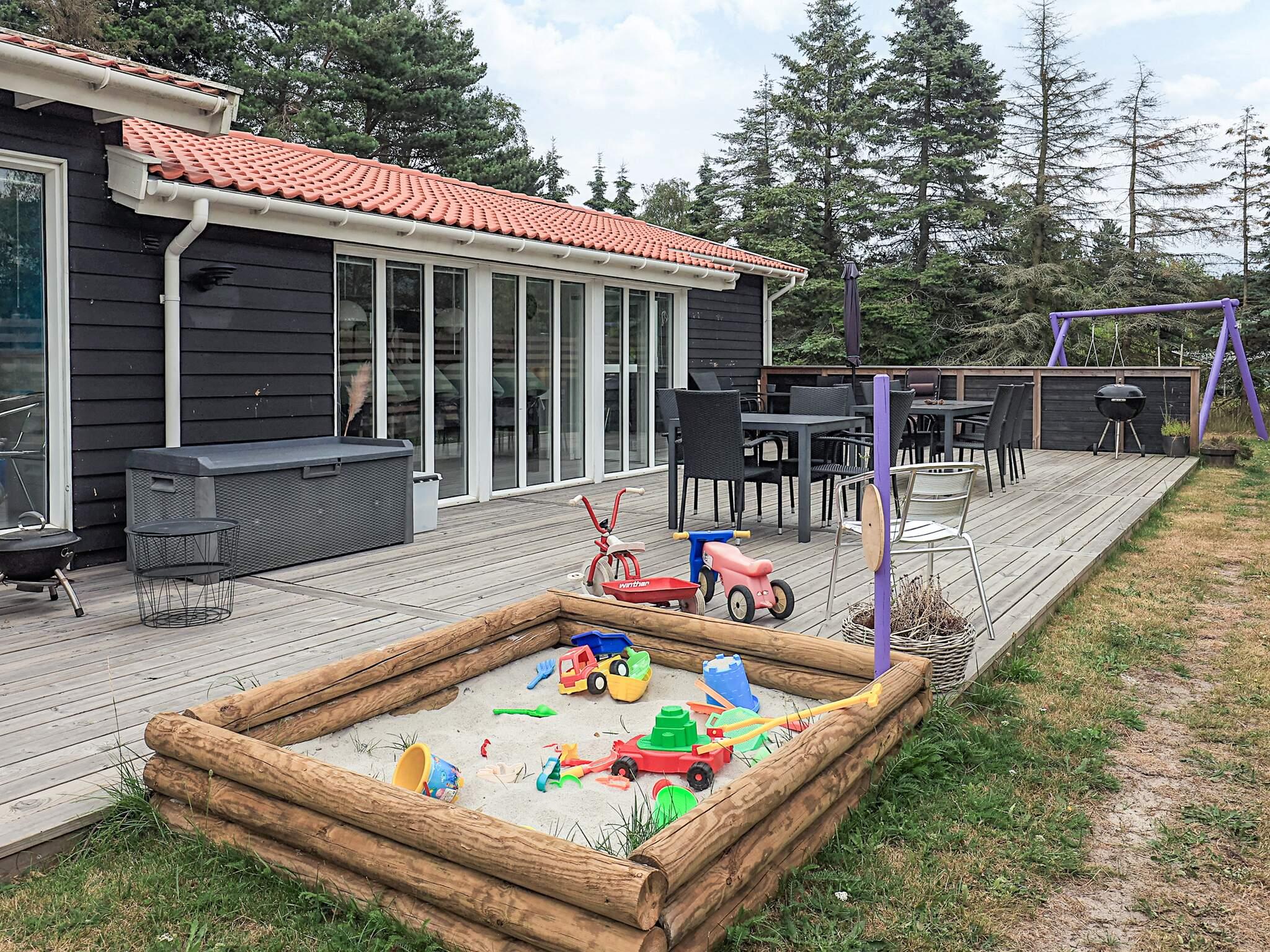 Solen kan nydes på en af de to træterrasser hvor der er havemøbler og solvognene samt kulgrill. På grunden er der masse af plads til leg og spil og til de små gæster er der gyngestativ.
