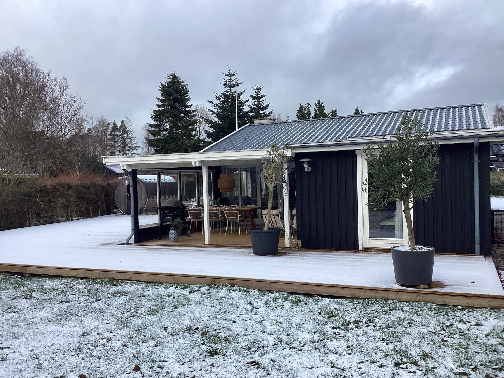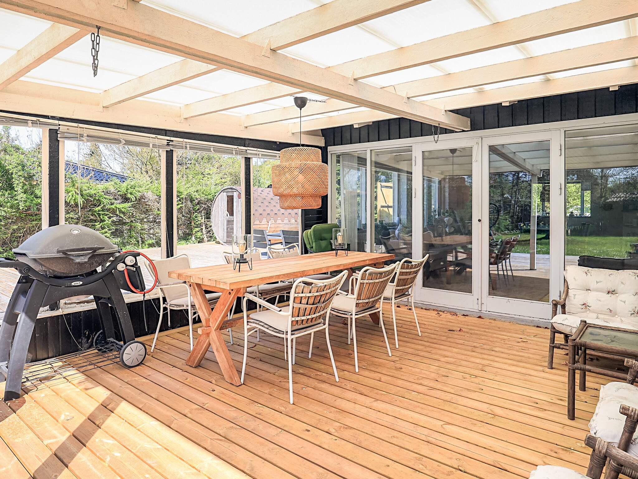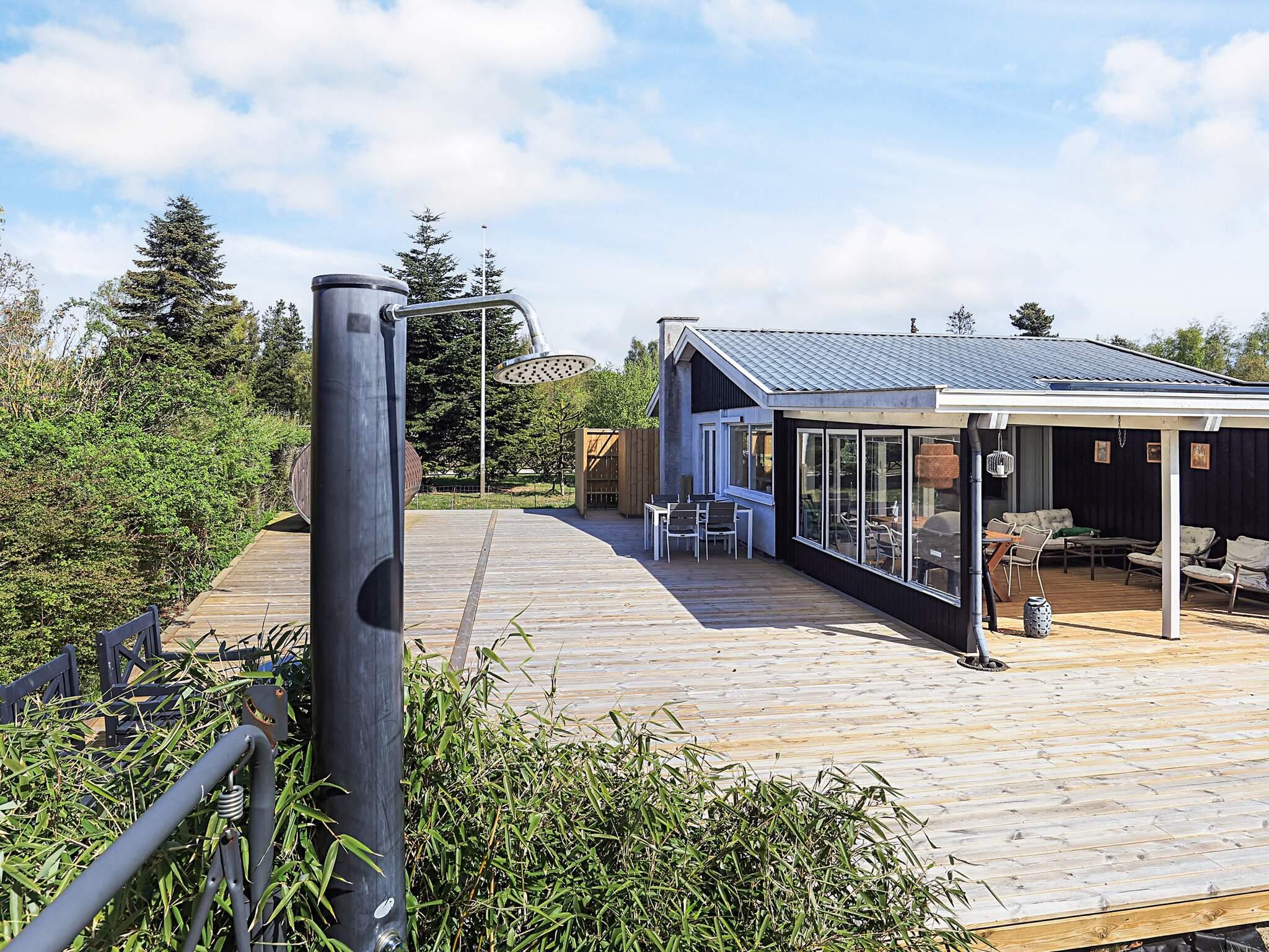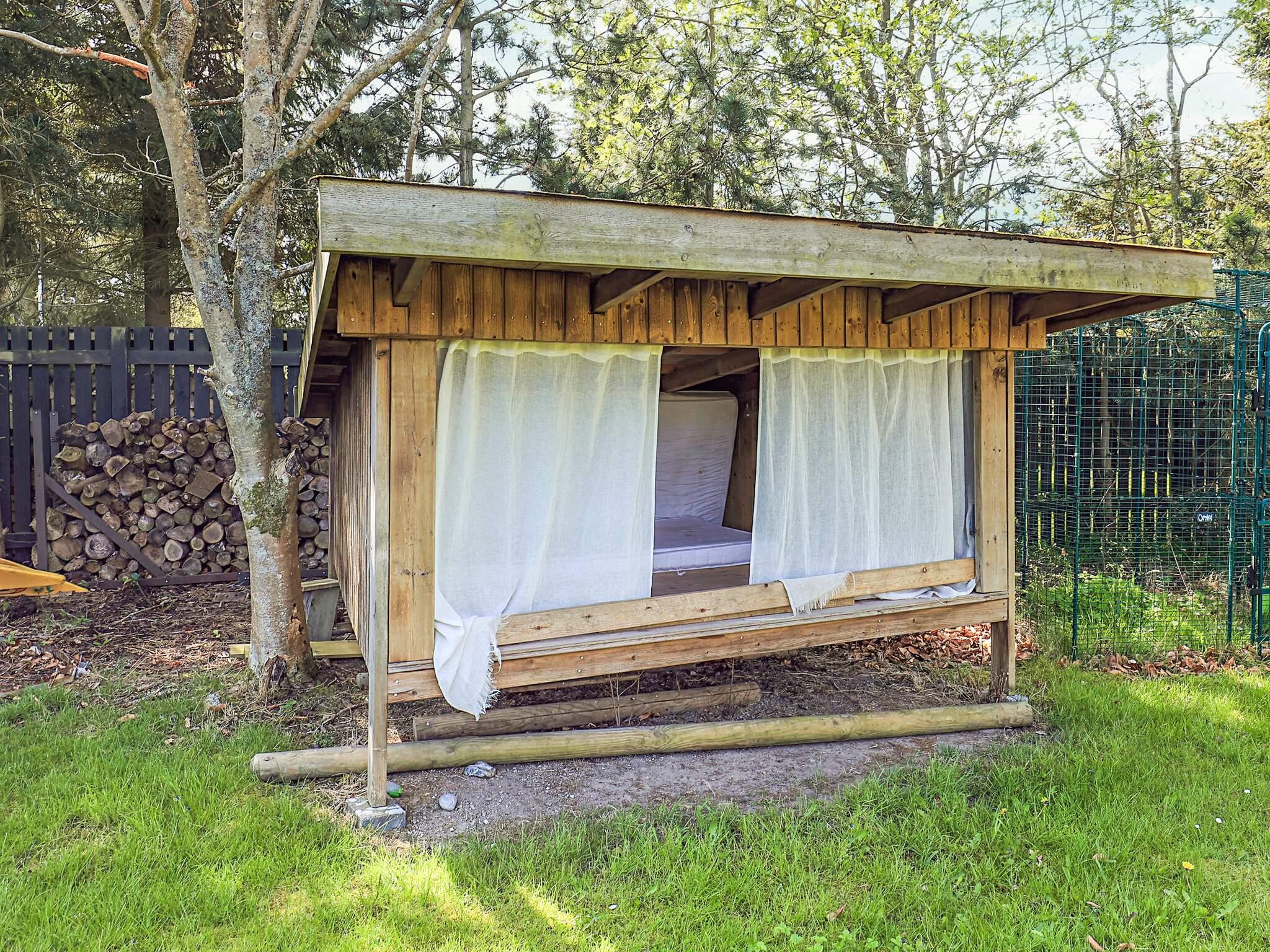 Sommerhuset ligger på 1024 m2 naturgrund, så der er masse af plads at bolter sig på, i haven er der blandet gyngestativ til de små gæster samt shelter. På den store terrasse med havemøbler og liggestole, kan I sidde og hygge jer, skulle der falde et par dråber vand for oven eller i vil forlænge hyggen kan i benytte den overdækket terrasse. Efter en lang dag på stranden eller i været ude og opleve Falster og Lolland, kan i bruge den store sauna eller udebruser på terrasse, og bagefter lave jeres aftensmad på kuglegrillen.
