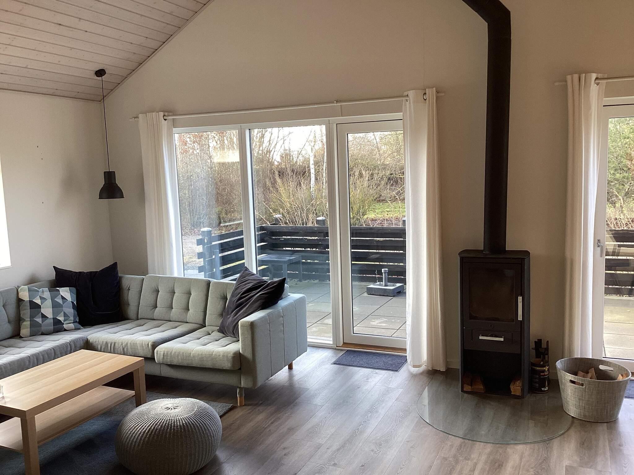 Den hyggelige stue er kombineret med et moderne indrettet køkken, hvor der bl.a. er kaffemaskine,induktionskomfur, separat ovn og mikroovn, køleskab med frostboks samt opvaskemaskine. I stuen er der smart tv samt trådløst internet, brændeovn til at skabe hygge og varme på de kolde dage. Sommerhuset hems med 2 opredninger samt playstation, til børn og barnlige sjæle.