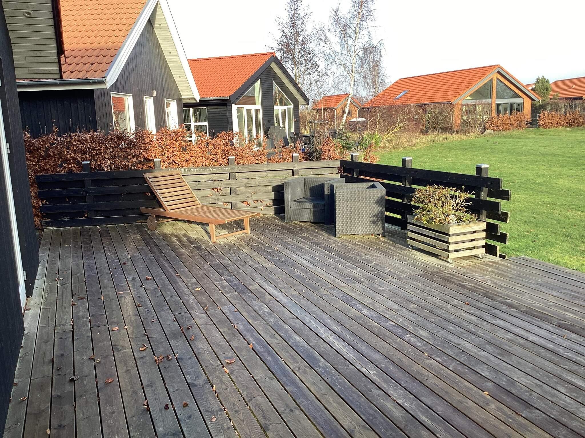 Huset ligger på en 370 m² stor naturgrund. Stor trætrasse med havemøbler og grill, så der er God plads til at slappe af og hygge med familien på de gode sommeraftener. Tæt ved huset er der stort fællesareal til fri afbenyttelse. Her kan I spille fodbold, boldspil, Huset ligger tæt på bowling, golfbane, velkomstcenter, Put & Take og tæt til indkøb og centrum.