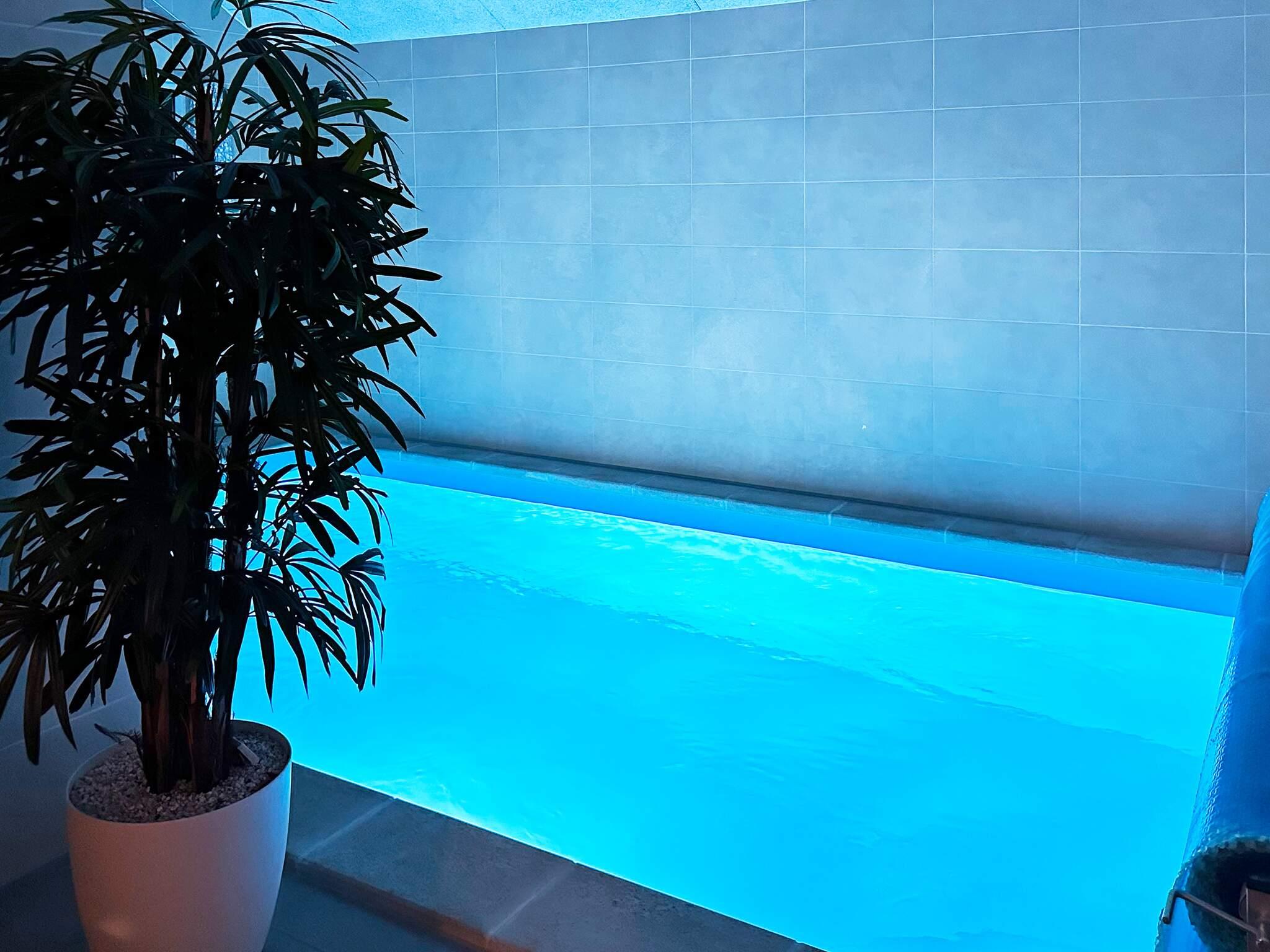 Uanset årstid findes der i dette sommerhus ingen undskyldning for, at badeturen ikke er sikret, da sommerhuset er udstyret med en lækker pool. Poolen måler 14 m2 og er udstyret med en romersk trappe samt et modstrømsanlæg. Følelsen af luksus og wellness er total, da I på terrassen finder husets lækre udendørs spabad samt en udendørs sauna omgivet af natur (og stjernehimmel).