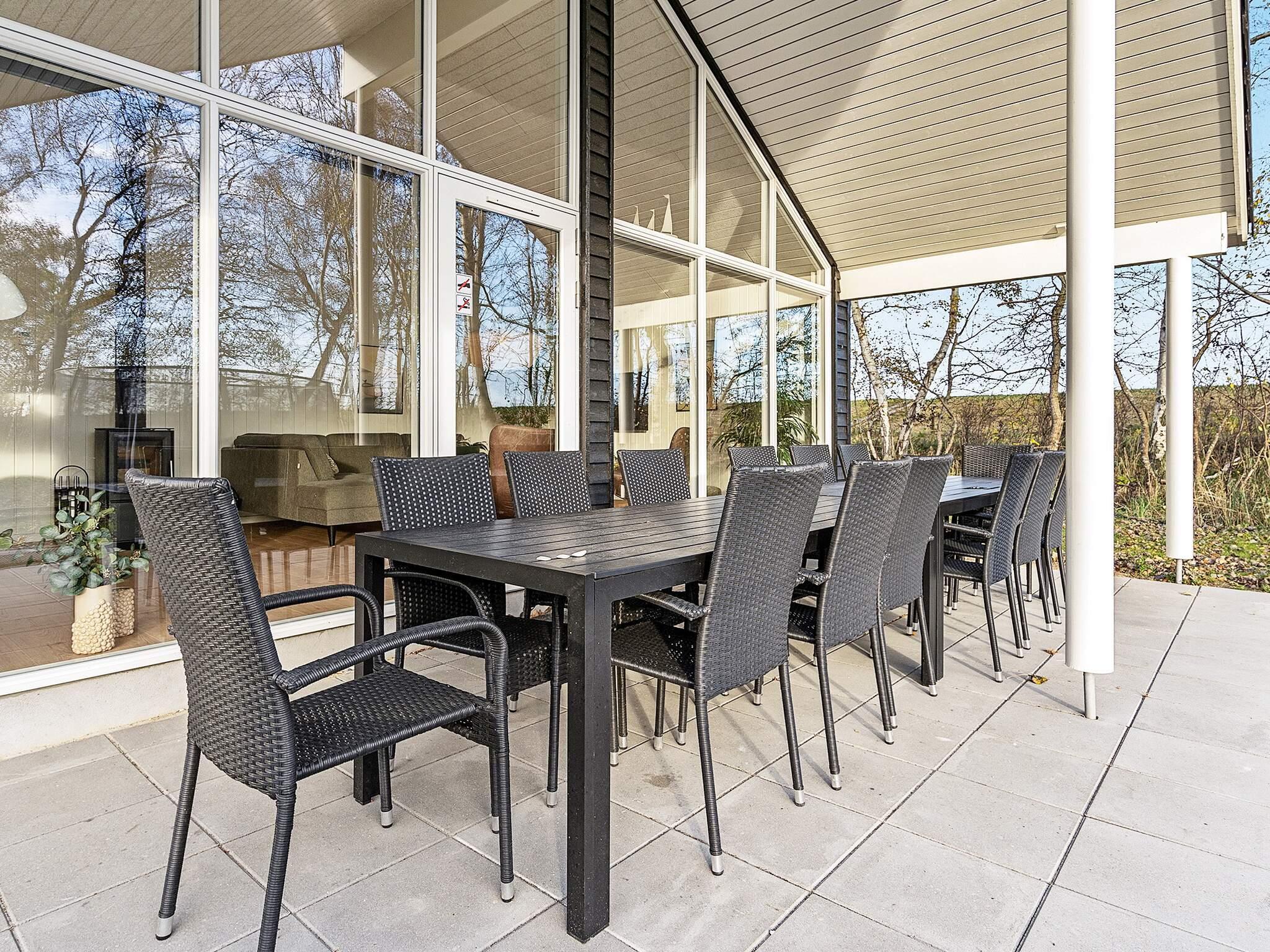 Udenfor er der også god plads til hygge og leg på den delvist overdækkede terrasse, som også indeholder havemøbler og grill. Børnene kan tillige lege i haven, som er anlagt som naturgrund, og huset har også egen nedgravet trampolin (benyttes på eget ansvar/forsikring). Det skal fremhæves at ferieområdets fælleslegeplads ligger under 100 meter fra huset.