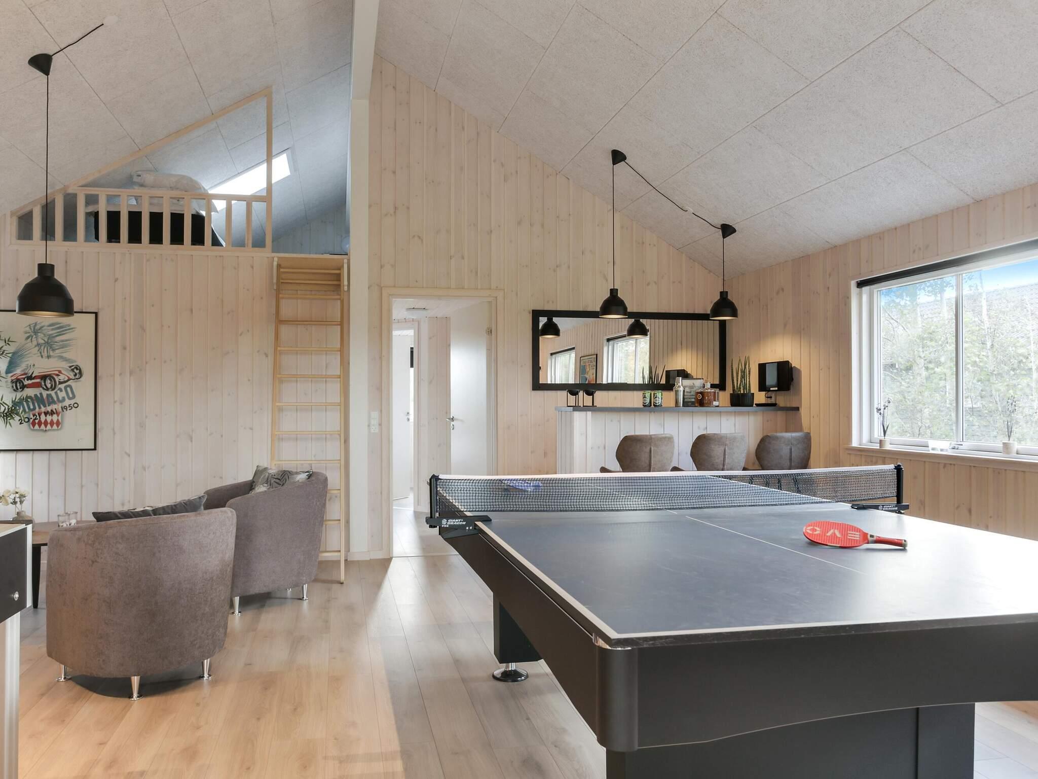 Man siger, at tiden flyver, når man hygger sig – og det vil man især opleve i dette sommerhus. Der er aktivitetsrum med kombineret billard- og bordtennisbord, bordfodbold, dart og PlayStation 4. Der er også sofagruppe og bar, så der er rig mulighed for at slappe af, mens man ser spillene.