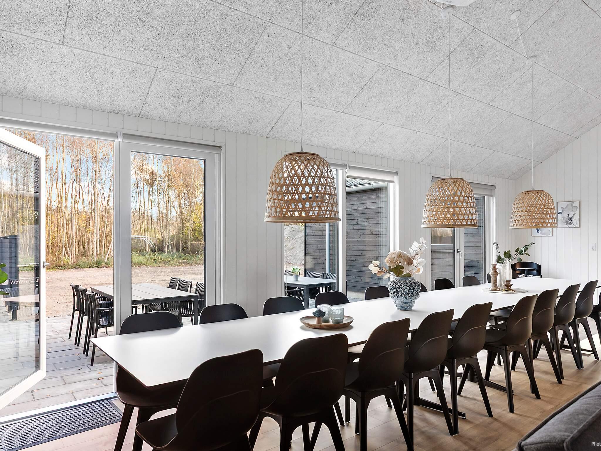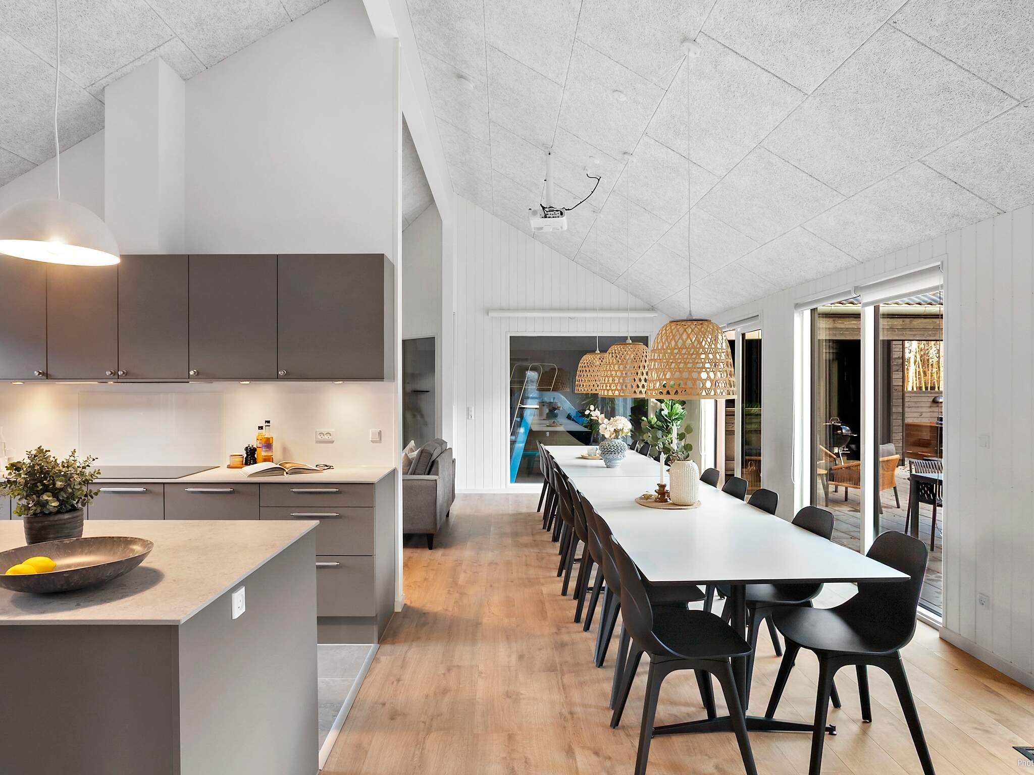 Med 8 soveværelser, 4 badeværelser og en rummelig hems med ekstra soveplads kan hele gruppen være sammen uden at gå på kompromis med komforten. Det store fællesrum er husets hjerte, hvor stuen, spisepladsen og køkkenet smelter sammen. Køkkenet er veludstyret med to ovne, to opvaskemaskiner og to køleskabe, hvilket gør madlavning til store grupper til en leg.