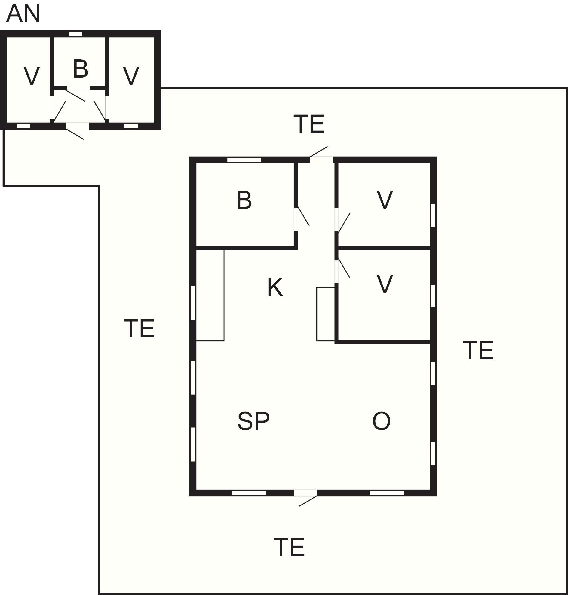 1 Anneks: (1DS+1S), wc, håndvask, bruser
