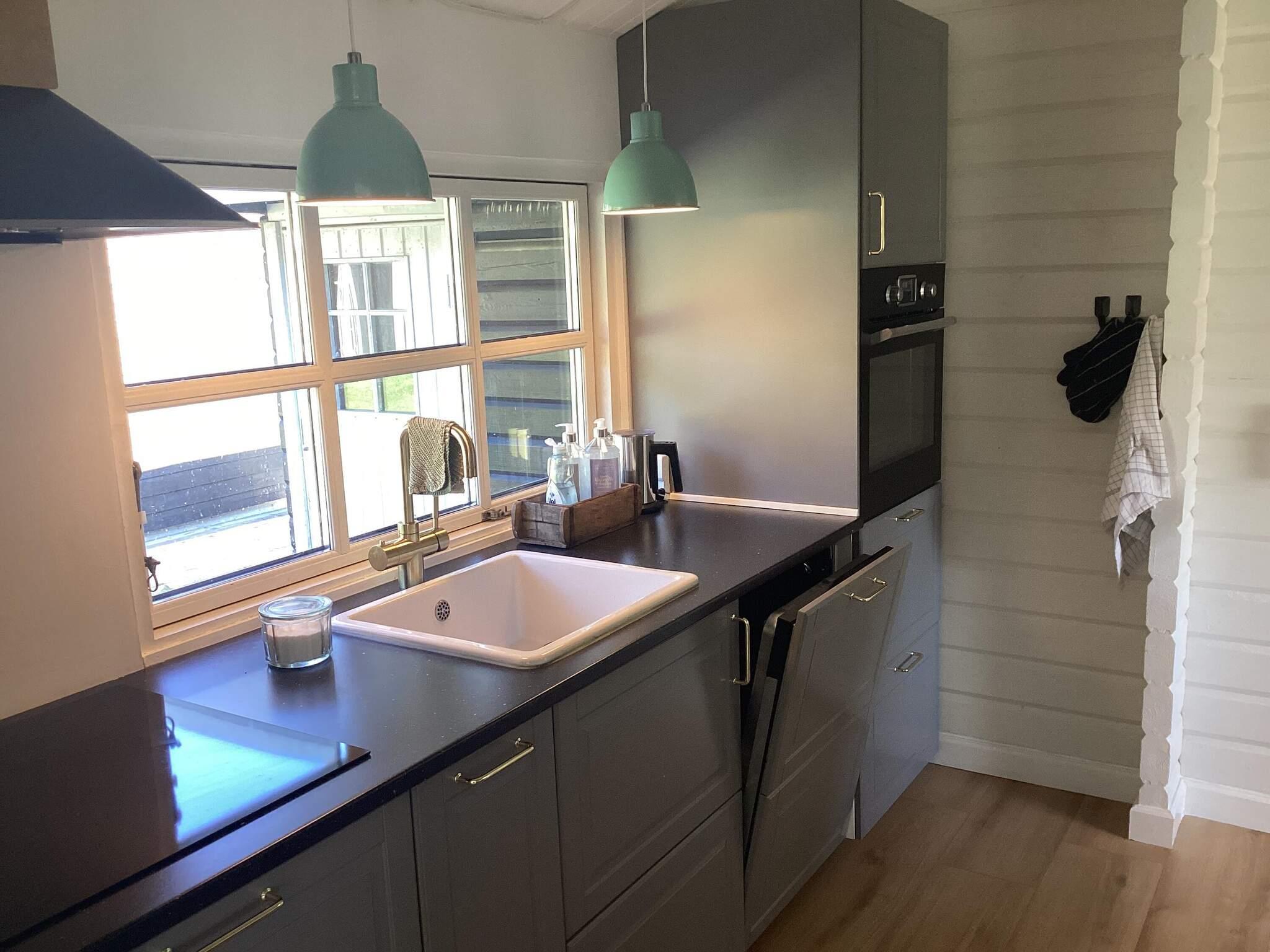 Sommerhusets køkken er udstyret med bl.a. kaffemaskine, induktionskomfur, separat ovn,køle-frys samt opvaskemaskine. Huset har to badeværelser, det ene i hovedhuset og det andet i anneks, begge med toilet-håndvask og samt bruseniche.