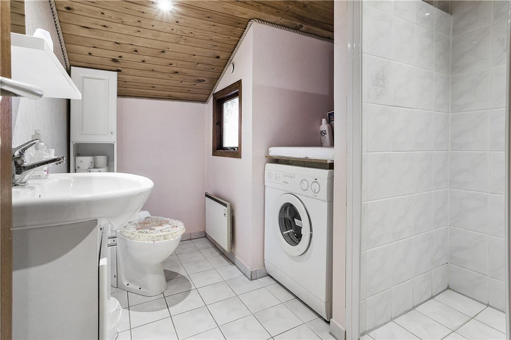 Huset er indrettet med et pænt klinkebadeværelse med WC, bruseniche og vaskemaskine, et pænt køkken i åben forbindelse med den store og flot indrettede stue, som byder på både sofagrupper, spisebordsafdeling, lænestole og et stort vinduesparti ud mod terrassen og haven.