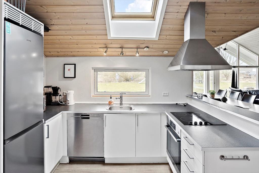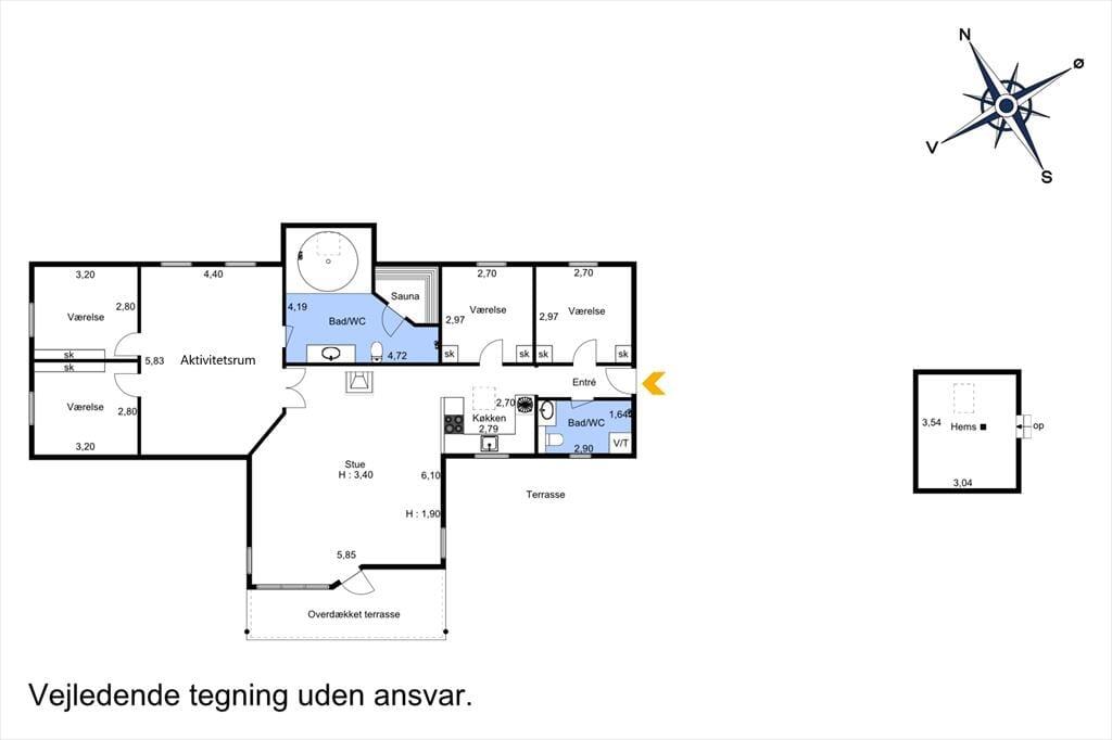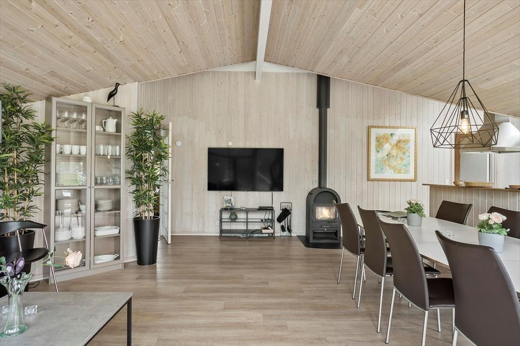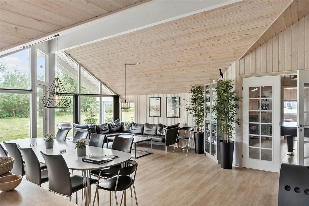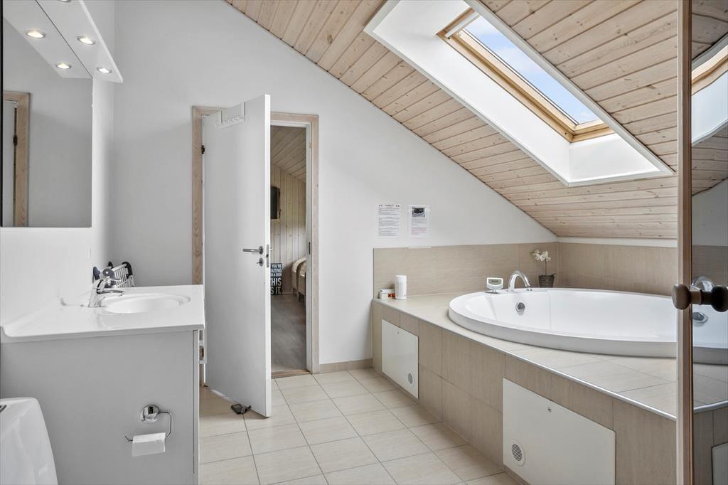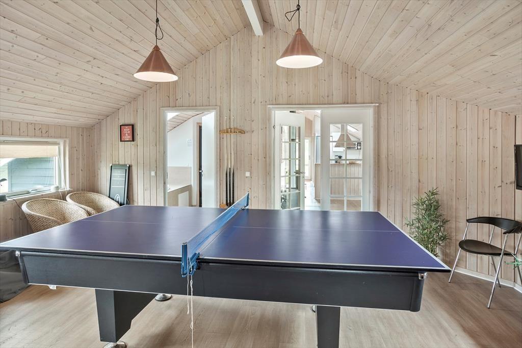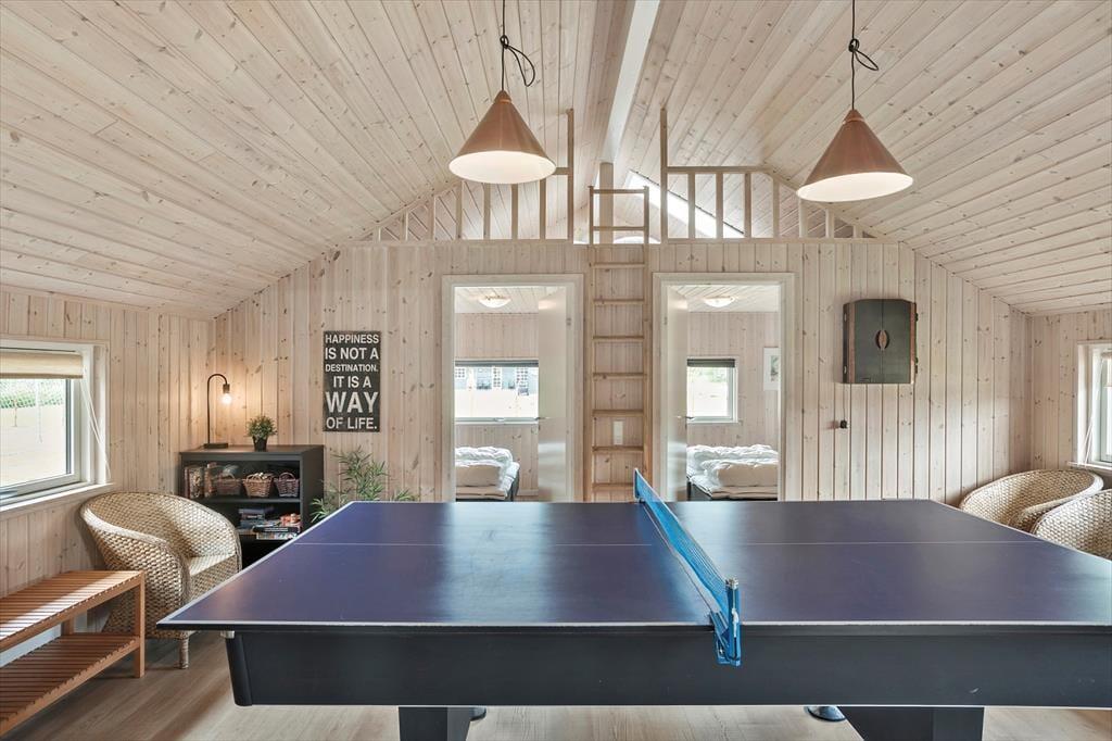 Fritidshuset er indrettet med 4 gode soveværelser, alle værelserne er dobbelte med helt nye senge fra maj 2022, samt en stor hems, hvor der kan sove 4 personer. Derudover har huset 2 flotte badeværelser, som indeholder WC, bruser, vaskemaskine og en tørretumbler. Desuden byder fritidshuset på det store åbne moderne køkken-alrum, i åben forbindelse med stuen som har sofaafdeling og spiseområde, samt udgang til den store dejlige terrasse og haven. Fra stuen er der adgang til husets aktivitetsrum, som indeholder både billardbord og bordtennis, ved aktivitetsrummet af finder vi badeværelse nummer 2 med WC, bruser, Spabad og en lækker sauna.