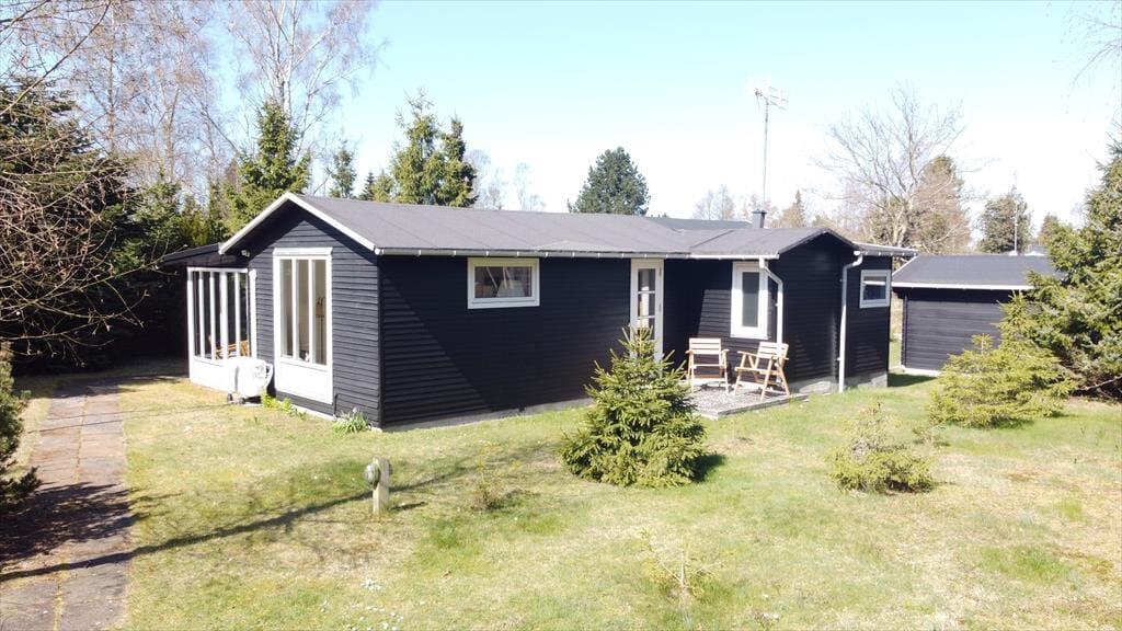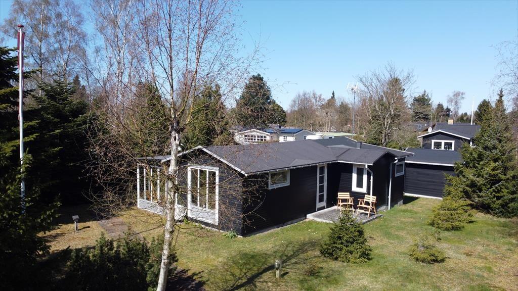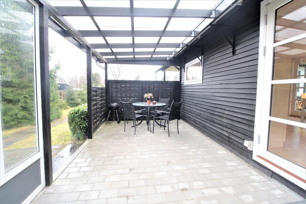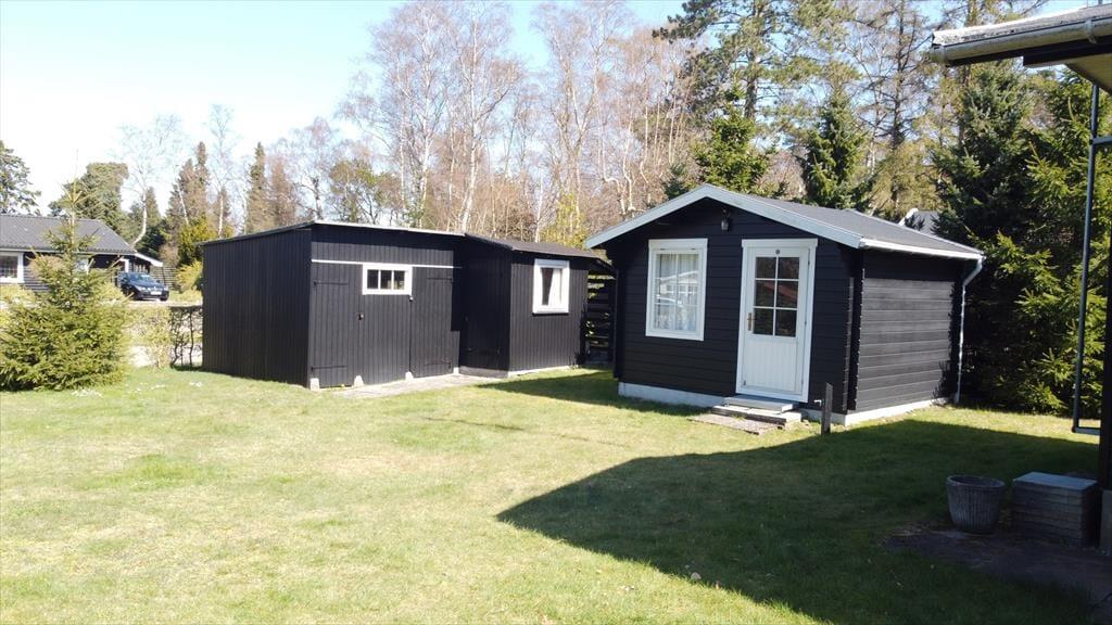 Fritidshuset byder på en lukket velholdt grund med beplantning der giver privatliv samt inviterer til leg for de mindste. Der er desuden også en skøn overdækket terrasse med udendørs spisesæt samt grill, der skaber de perfekte rammer for en hyggelig ferie med familien.