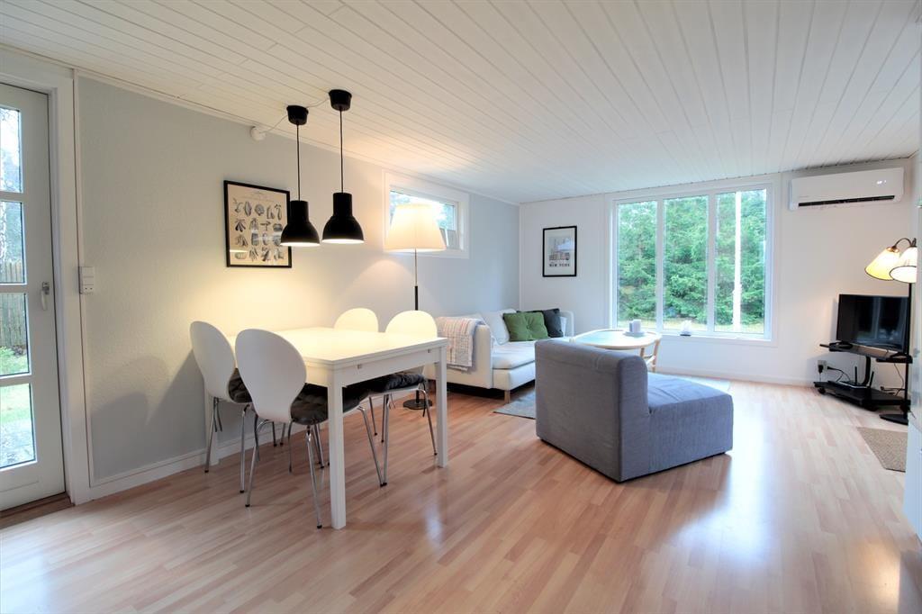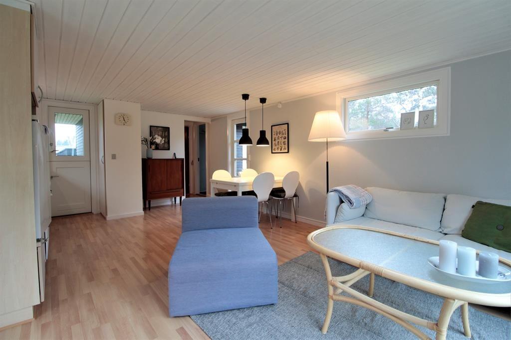 Velindrettet nyrenoveret fritidshus med hyggeligt køkkenalrum med spiseområde nær køkkenet og tv-stue med sofa og lænestol. Fra køkkenalrummet er der indgang til separat toilet, bad samt soveværelse med dobbeltseng og skabsplads. Der er desuden direkte forbindelse fra køkkenet til en dejlig overdækket terrasse samt den hyggelige have. Derudover er der et fint opvarmet anneks med to sovepladser.
