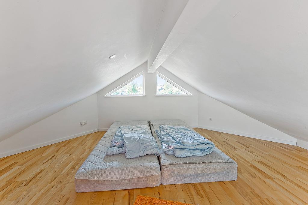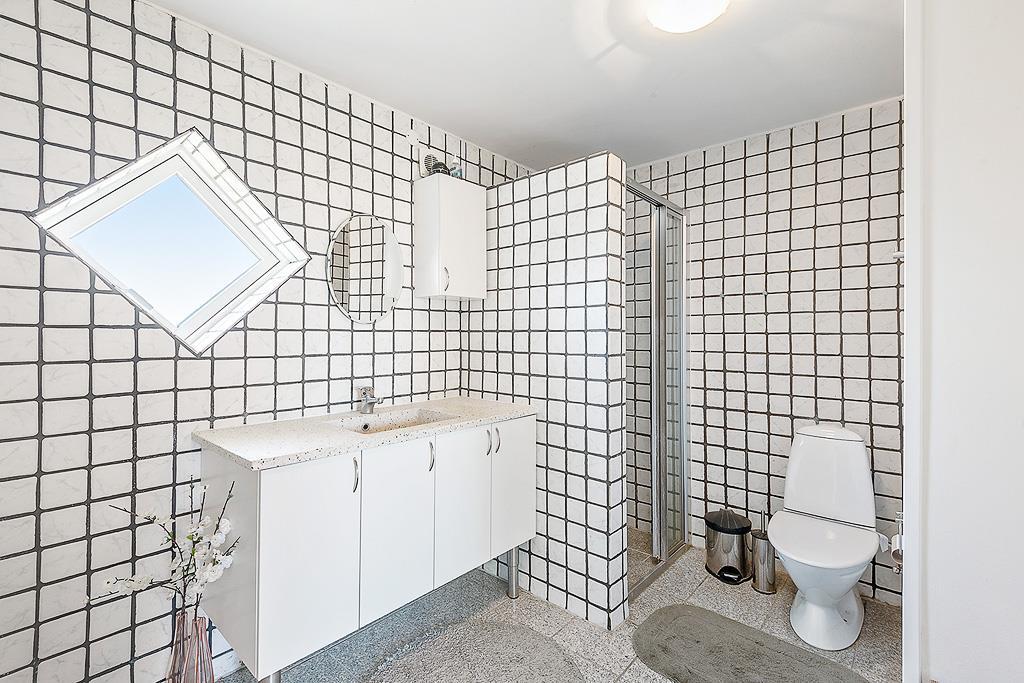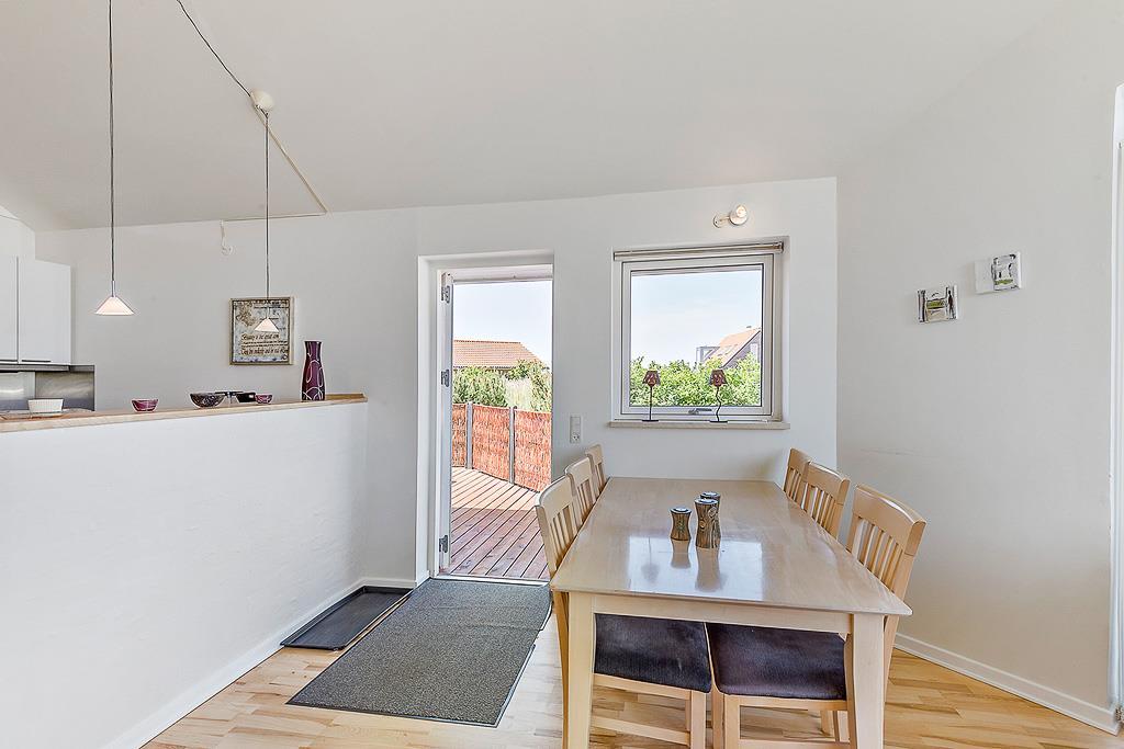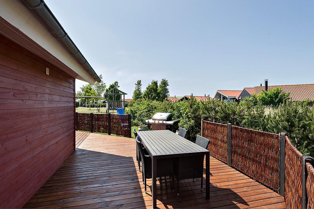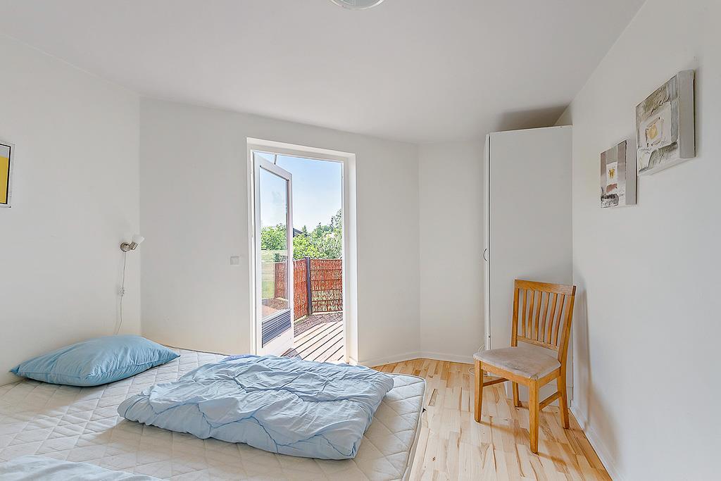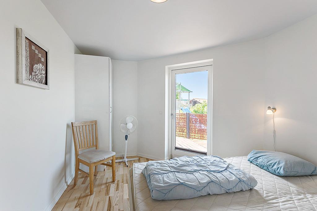 Fra de 2 soveværelser i stueetagen er der udgang til den dejlige træterrasse og haven, som indeholder både havemøbler, grill, gyngestativ og rutsjebane.