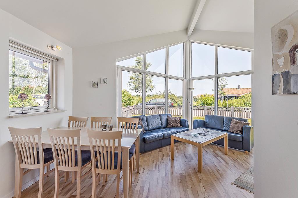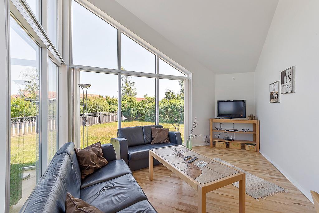 Velholdt, flot og lyst indrettet fritidshus, med 2 gode soveværelser med en dobbeltseng i hver + skabsplads. Et stort og flot indrettet badeværelse, med WC, brusekabine, Sauna og et spabad. Husets køkken-alrum, er opdelt med et moderne køkken, med ovn, køleskab, kaffemaskine, elkedel og meget mere og kun adskilt til spiseafdelingen ved en bardisk. Ved køkkenet er der en trappeopgang til 1 sal, hvor der findes en hems med to værelse, hvoraf det ene indeholder 2 madrasser. Fortsætter man forbi spisebordet, kommer man ned til sofaafdelingen og det store og utroligt flotte vinduesparti ud mod haven, som gør at der altid er lyst og dejligt at være i huset.