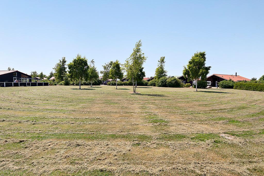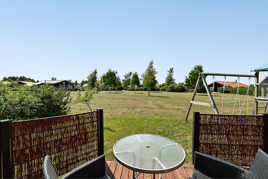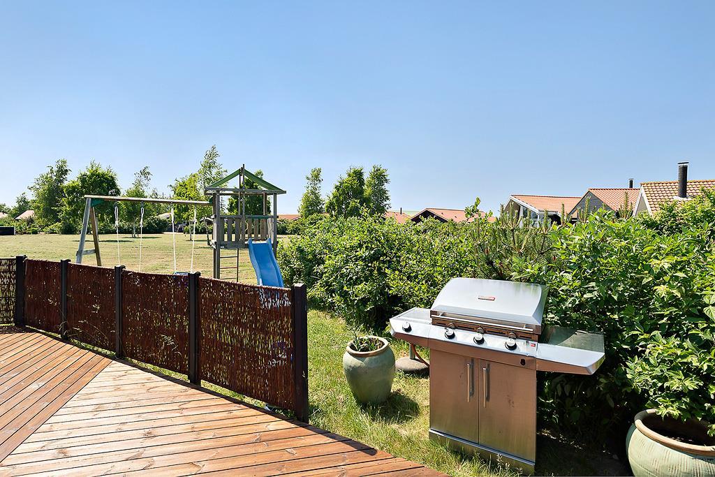 Lækker træterrasse med grill og havemøbler, samt en god have med masser af aktiviteter til børnene. Samtidig ligger grunden ud til en stor åben plads, hvor der er masser af plads til boldspil og leg.