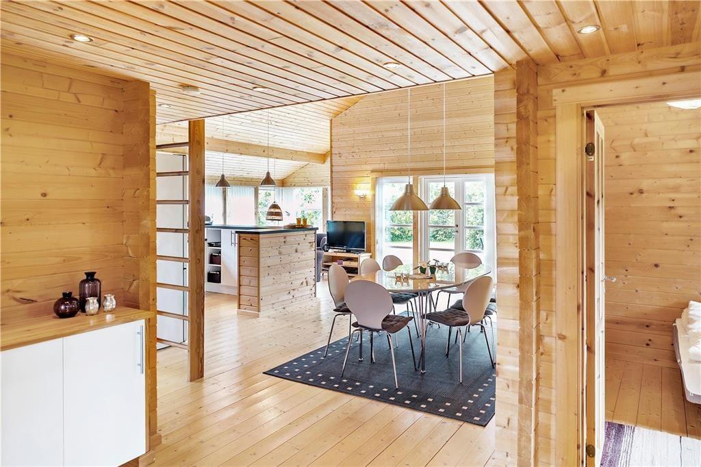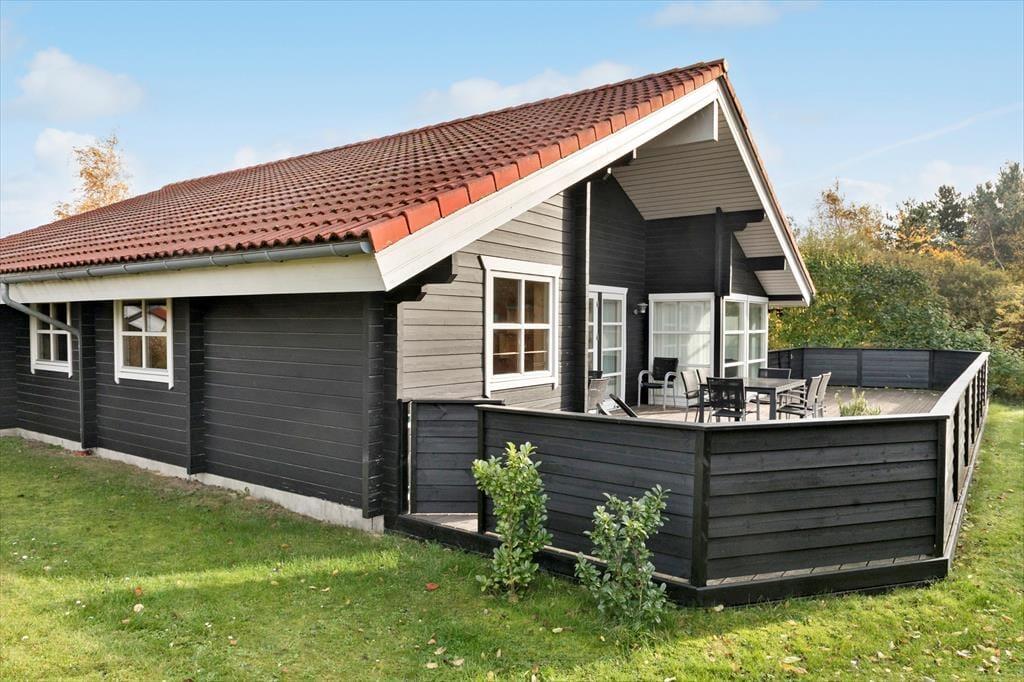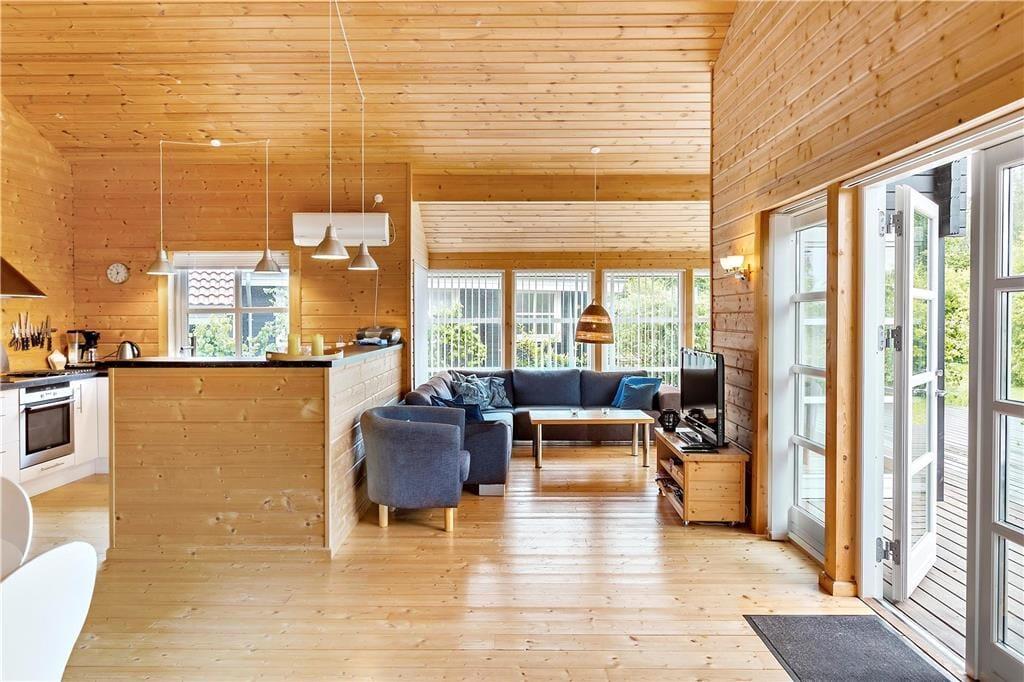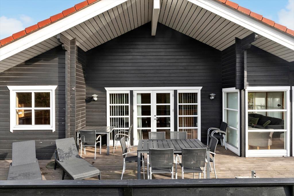 Fra køkken-alrummet af er der udgang til den dejlige træterrasse og haven, som indeholder både havemøbler og grill.