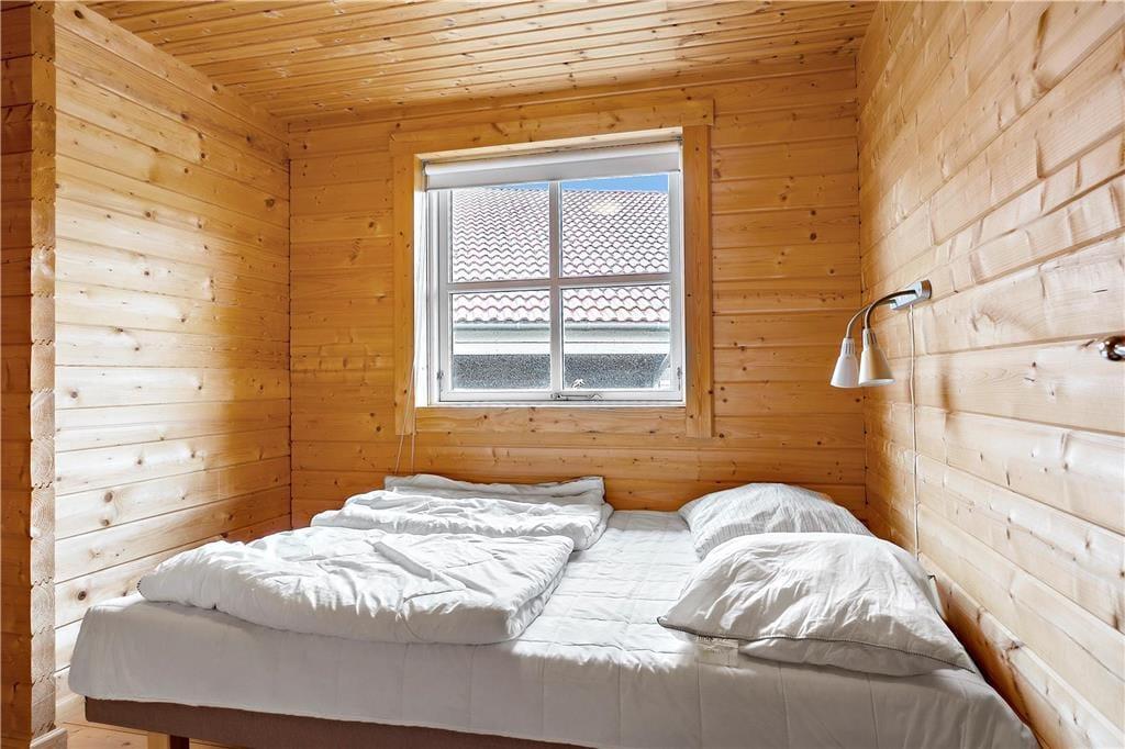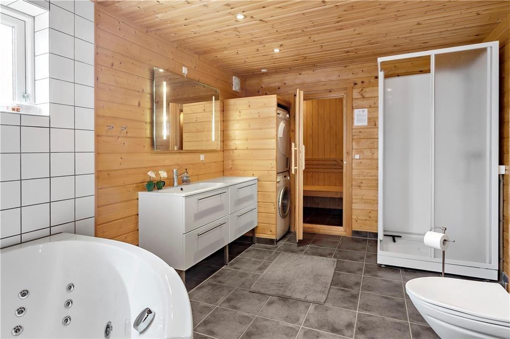 Velholdt, flot og lyst indrettet fritidshus, med 4 gode soveværelser hvor de 3 af soveværelserne har dobbeltseng og det sidste værelse har en køjeseng. Et stort og flot indrettet badeværelse, med WC, brusekabine, Sauna og et spabad, samt et lille gæstetoilet på gangen.