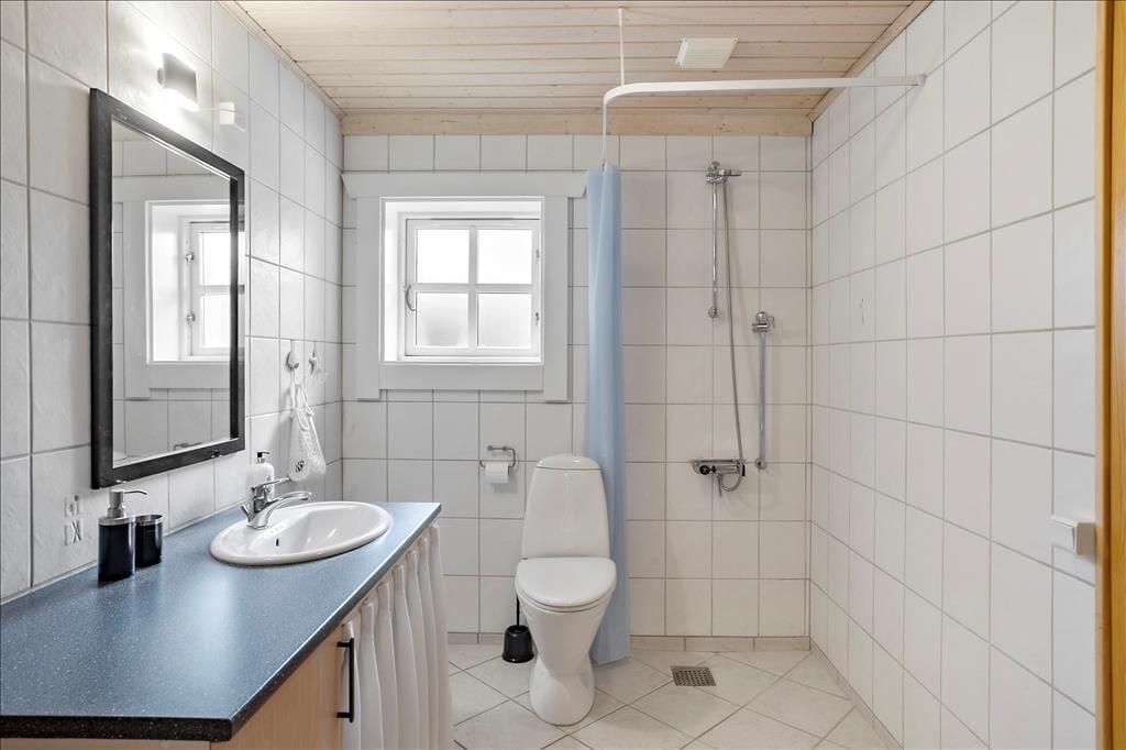 Fra stuen er der ligeledes udgang til den lækre syd-vestvendte træterrasse, hvor især aftensolen kan nydes i perfekte omgivelser. Fra terrassen træder du direkte ud på et stort grønt ude areal, som tilbyder masser af plads til boldspil og leg med hele familien samt mulighed for udkig til de smukke marker som omkranser sommerhusområdet.