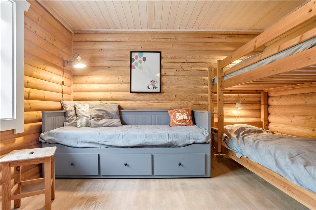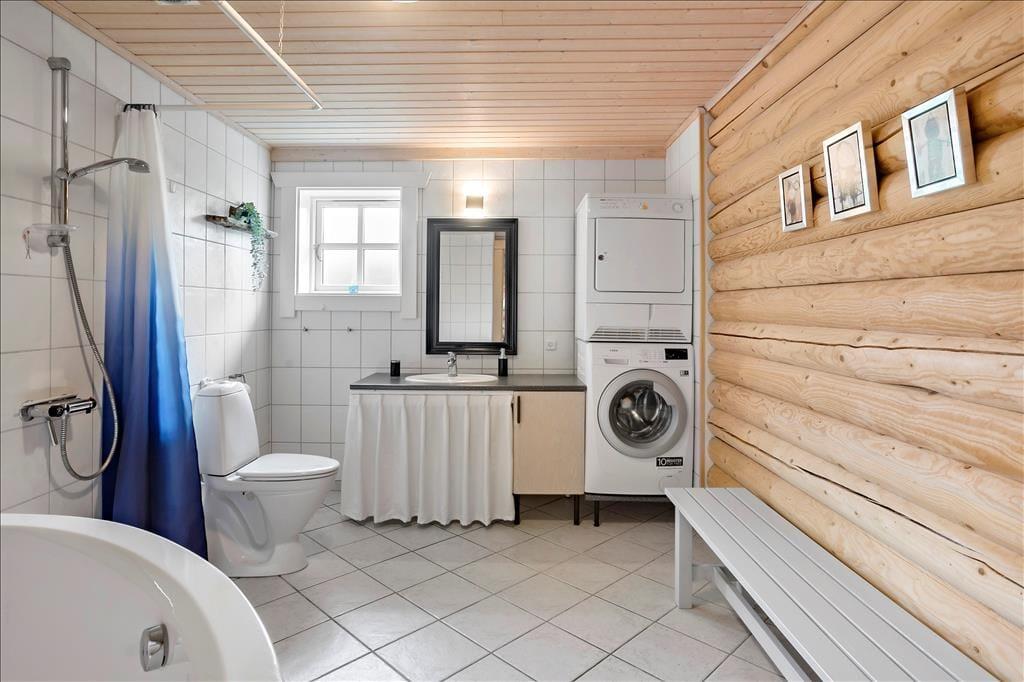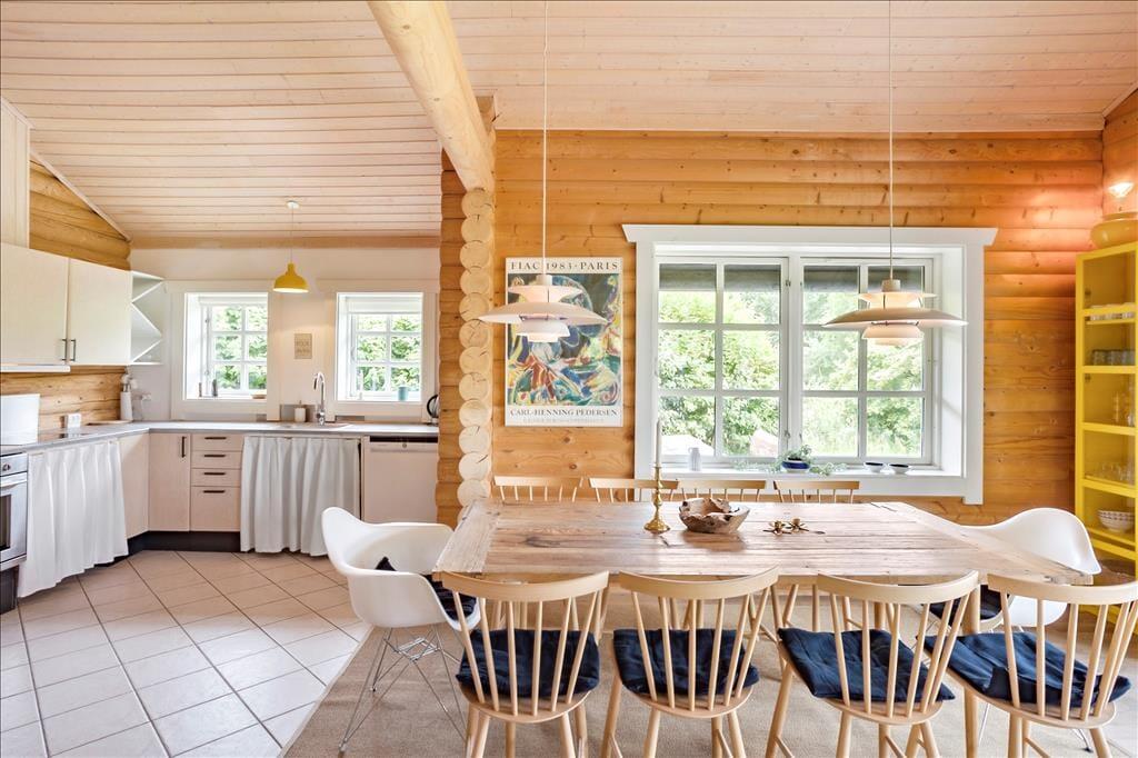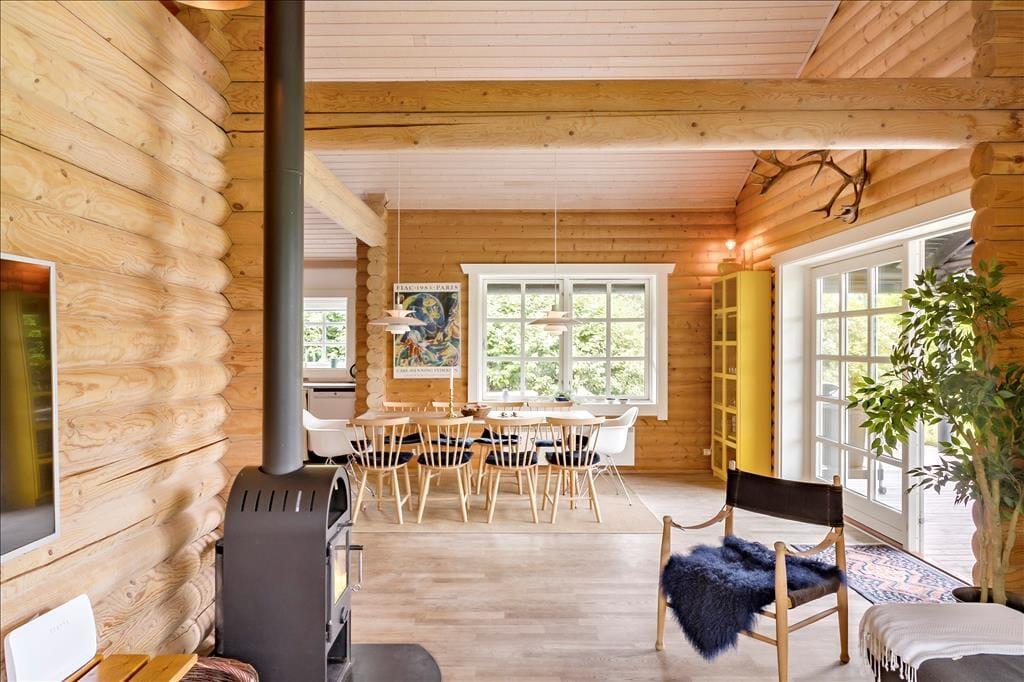 Dette skønne bjælkehus emmer af den helt rigtige sommerhusstemning og tilbyder 3 gode soveværelser, hvoraf 2 af dem er med en dobbeltseng og det sidste værelse indeholder 1 køjeseng og en sovesofa/udtrækningsseng. Derudover er der en hyggelig hems i køkken-alrummet med 2 madrasser. I huset er der 2 badeværelser hvor det ene indeholder spabad, bruser, WC, vaskemaskine og tørretumbler og det andet badeværelse indeholder bruser, wc og en god sauna til at varme sig på, på de kolde dage.