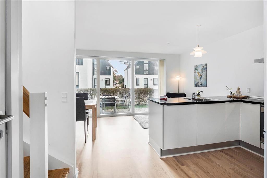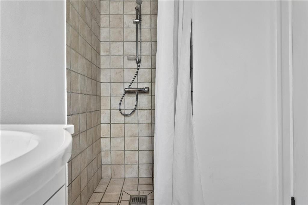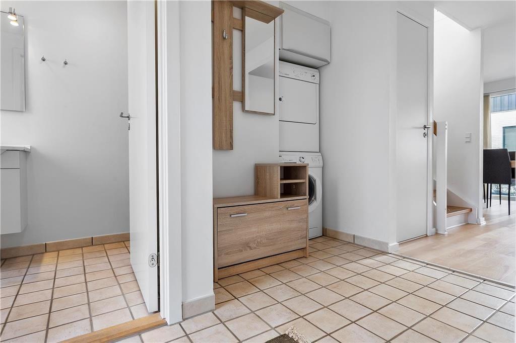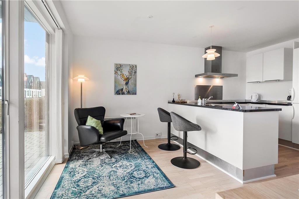 Indrettet med entré med adgang til badeværelse med WC, håndvask og bruseniche, og til et soveværelse med 2 enkeltsenge og god skabsplads. For enden af entréen kommer man ind til husets flotte og lyse køkken-alrum, hvor køkken afdelingen indeholder alt hvad hjertet begærer, mens resten af rummet indeholder et spisebord med stole og en sovesofa. Fra køkken-alrummet er der også udgang til boligens dejlige terrasse.