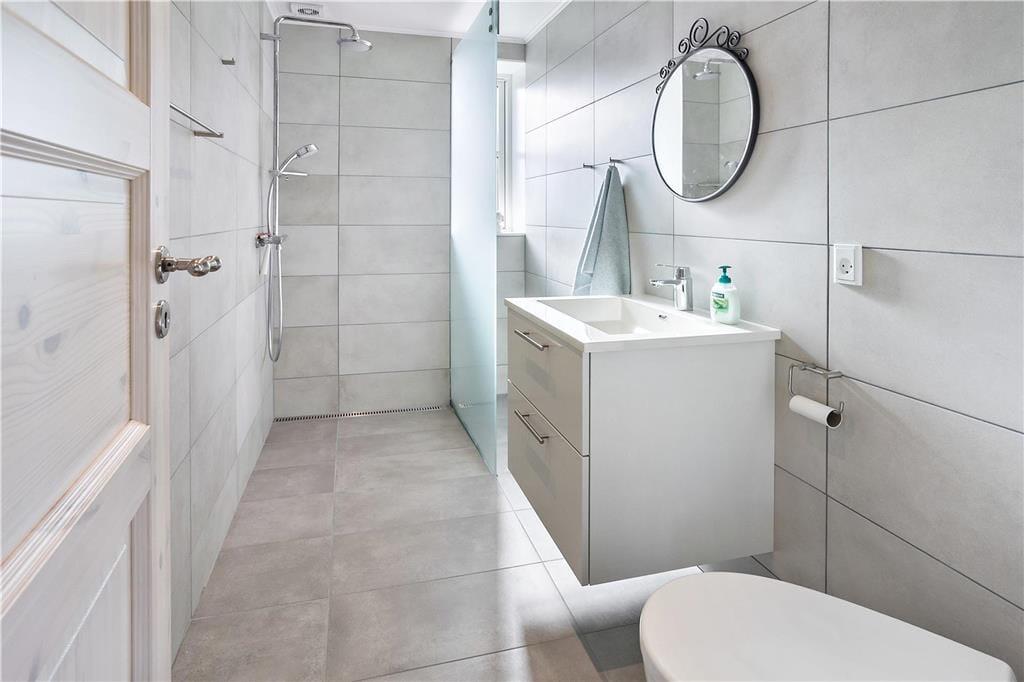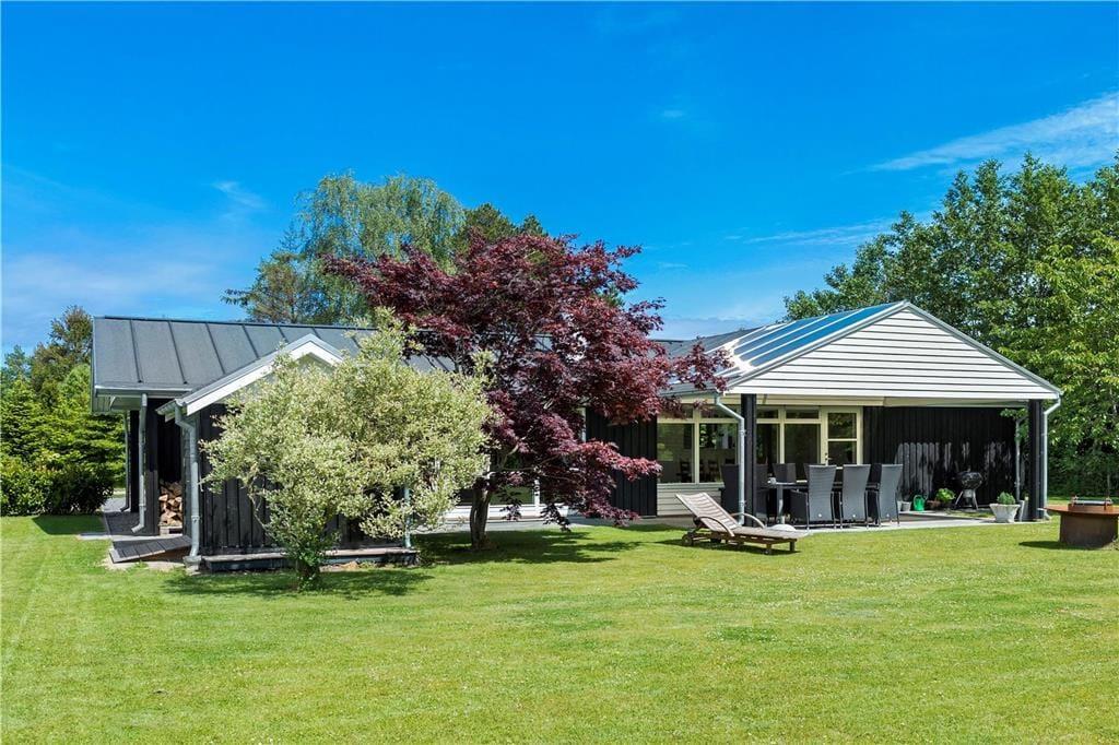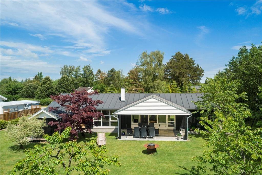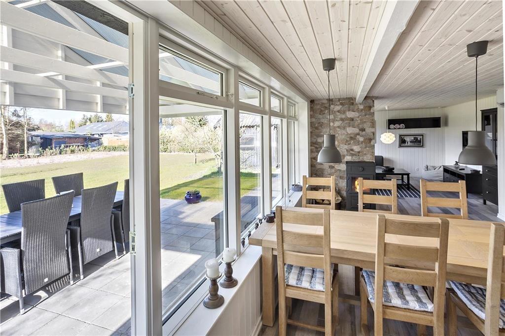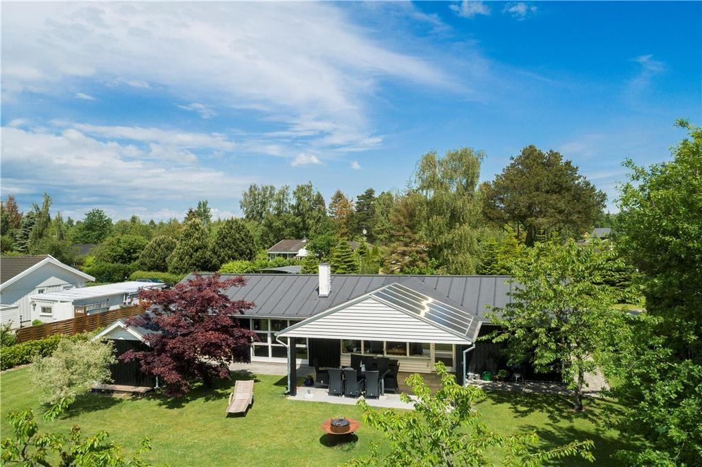 Fra stuen er der udgang til den store overdækkede terrasse, sat den skønne have med masser af græsplæne til boldspil og leg.