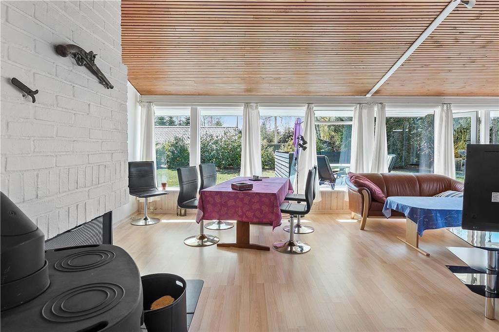 Sommerhuset opvarmes med elvarme, varmepumpe samt brændeovn.