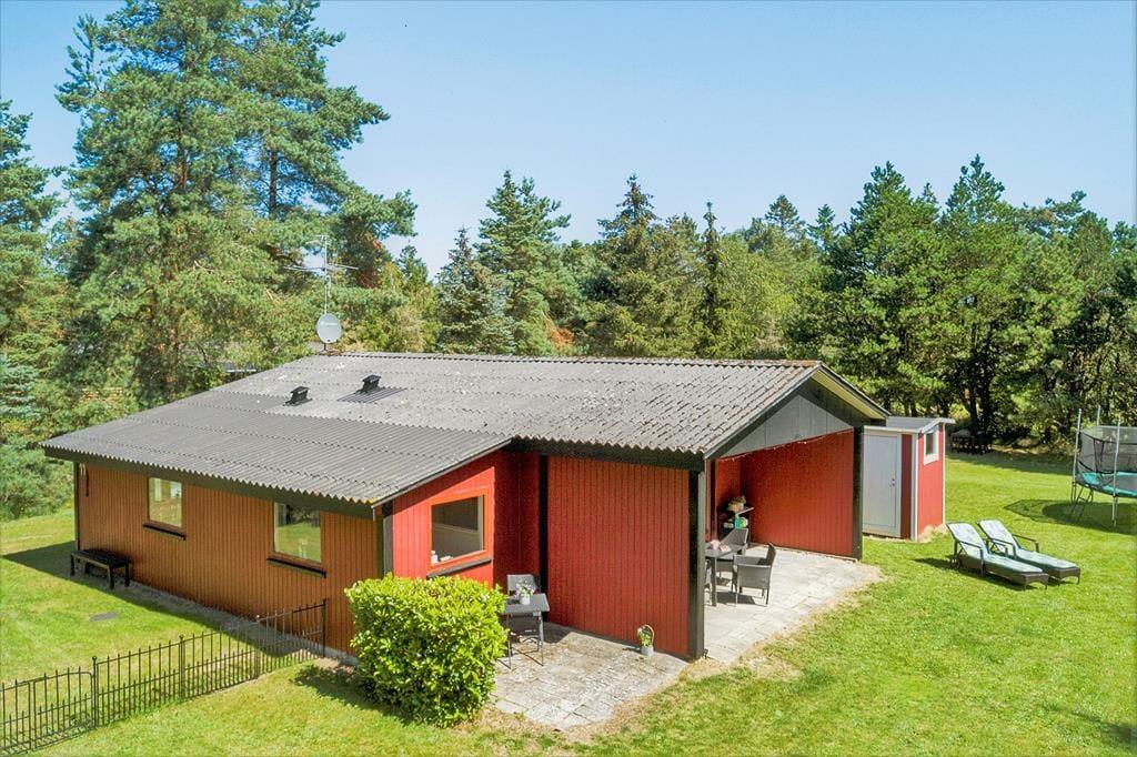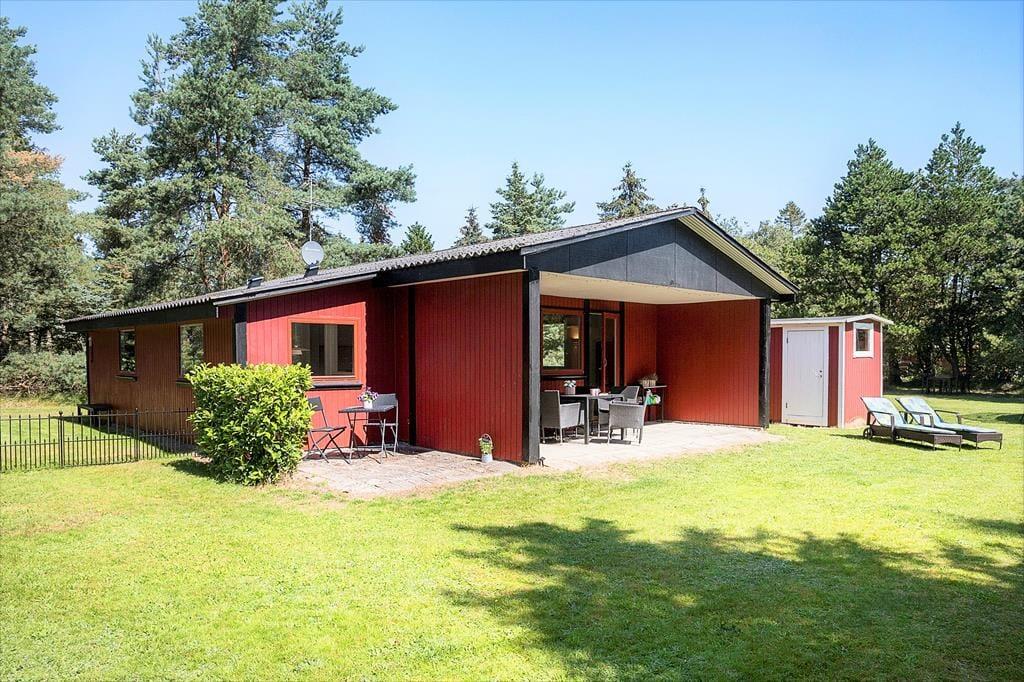 Hyggeligt sommerhus beliggende i et roligt område, nær børnevenlig badestrand som kun ligger ca. 850 meter væk, feriehuset ligger på en delvis lukket grund med god plads til hygge og leg. Nærmeste forretning er beliggende i en afstand af 2350 meter ca.