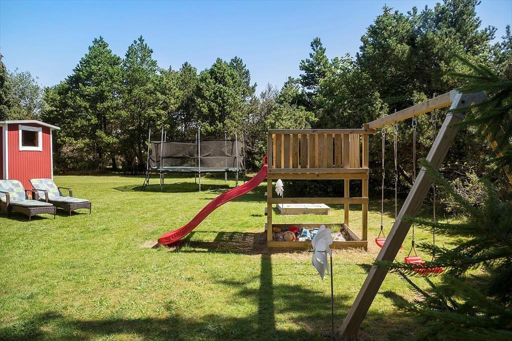 Ferieboligen er beliggende på en 1326 m² stor havegrund. Til ferieboligen hører 20 m² åbent terrasseareal. Desuden er der 10 m² overdækket terrasse. Der er redskabsrum. Sandkasse. Parkering ved ferieboligen.