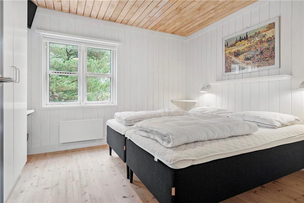 2 gode soveværelser: 1 med to nye boksmadrasser med latex topmadrasser samt 1 med fire gode køjesenge hvoraf de to nederste har nye springmadrasser og latex topmadresser. Nye dyner og hovedpuder samt god skabsplads.