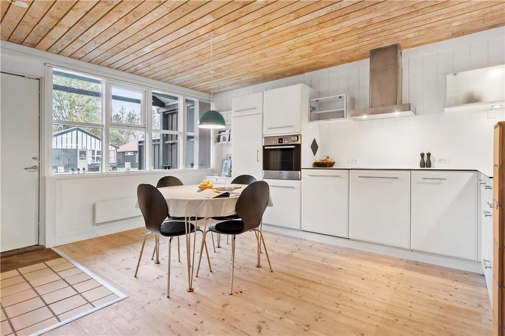 Et dejligt køkken med opvaskemaskine, mikroovn, diverse nye køkkenmaskiner og køkkenredskaber samt med udgang til terrasse hvor eftermiddags- og aftensolen kan nydes.