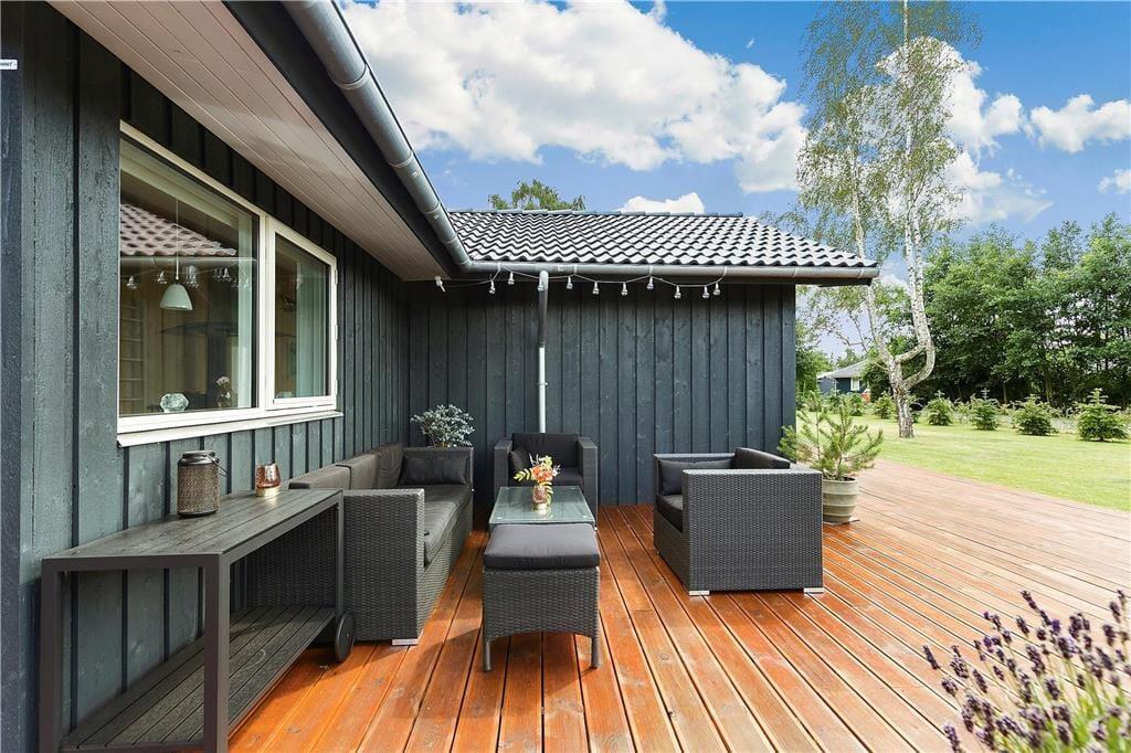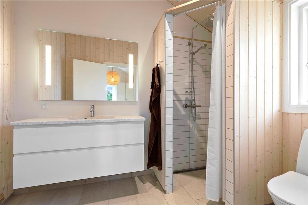 Fritidshuset byder på en entre, 3 gode soveværelser hvor der er dobbeltsenge i de 2 af dem og 2 enkeltmandssenge i det sidste soveværelse, et flot køkken-alrum og en stor stue med spiseområde og sofa arrangement, fra stuen er der udgang til en stor terrasse. Endvidere byder fritidshuset på 2 badeværelser med WC og bruser i dem begge.