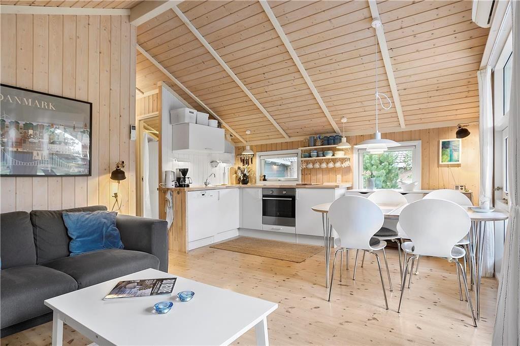 Ferieboligen på i alt 66 m2 er totalrenoveret i 2019 i forbindelse med opførsel af ny tilbygning. Opvarmning ved 2 nye energibesparende varmepumper (A/C), der sikrer et behageligt indeklima.