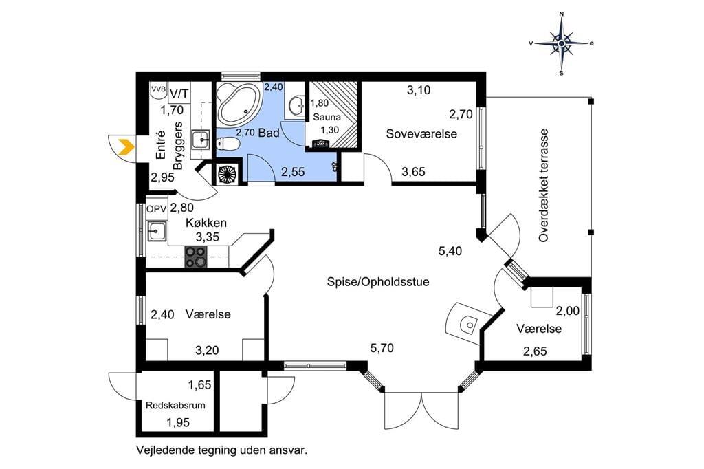 Feriehuset byder på 3 gode soveværelser, hvoraf det ene af dem er med en dobbeltseng og de sidste 2 værelser indeholder hver 2 enkeltmandssenge, samt en hems med 2 madrasser, et lækkert badeværelse som indeholder spa, sauna, bruser og WC.