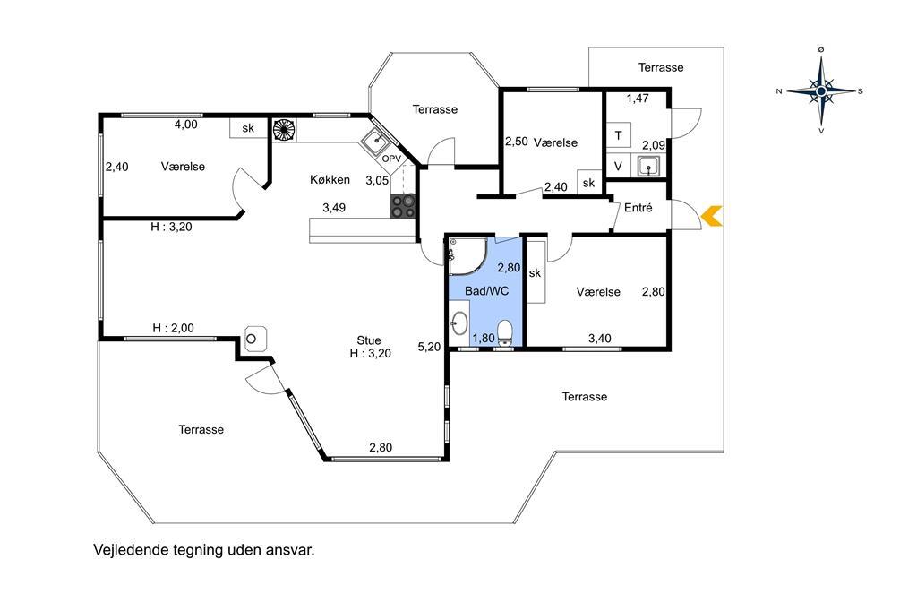I dette hus er du sikker på en god ferie. Huset har en meget høj standard og lader ikke meget tilbage at ønske. Stuen er lys og indbydende med nye trægulve. Spiseområdet er beliggende ved køkkenet, og fra stuen er der udgang til dejlig terrasse, så det er muligt at nyde dagens måltider til den friske duft af sommer. Køkkenet er rummeligt og særdeles godt indrettet. Badeværelse med god plads. Der er tre soverum, det ene med dobbeltseng, værelse 2 med to enkeltsenge og værelse 3 med en dobbeltseng. I haven findes et flot anneks med 2 enkeltsenge.