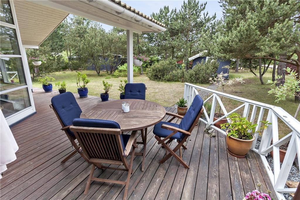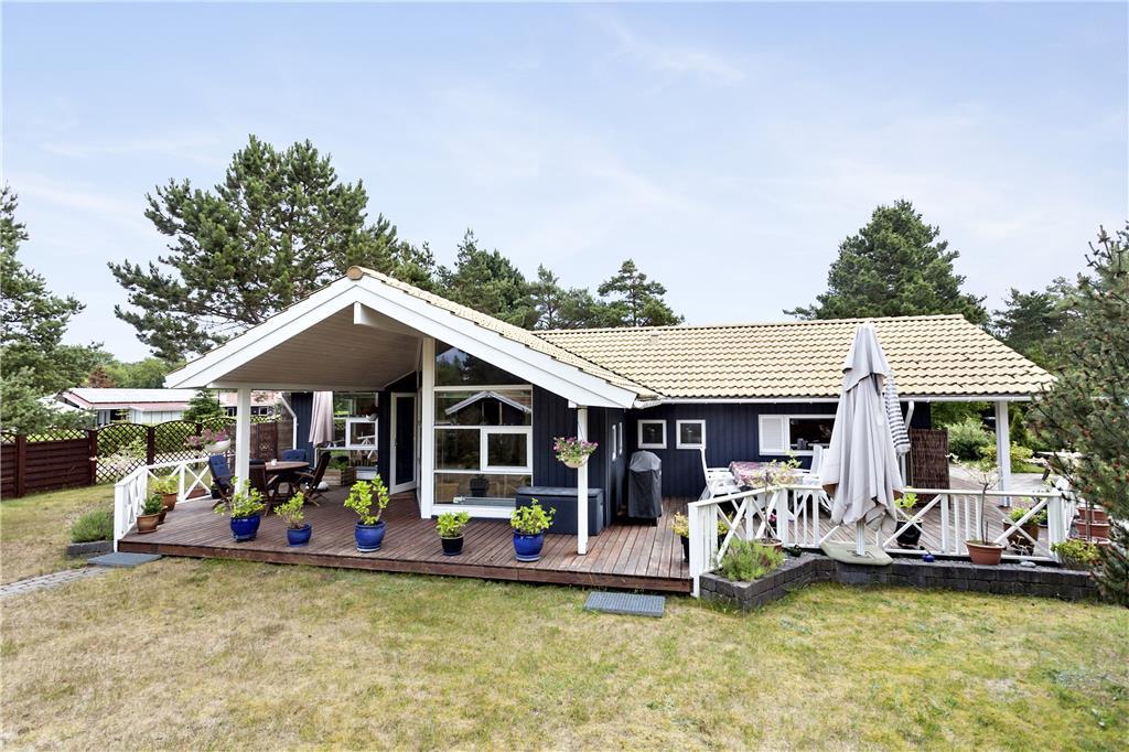 Huset ligger på en 1025 m2 stor og velpasset grund blot 550 meter fra en god og børnevenlig sandstrand. Rundt omkring i den dejlige have findes mange gode hyggekroge, som hele sommeren indbyder til masser af hygge og afslapning. Terrassen er møbleret og delvist overdækket til at sprede hygge sidst på aftenen. Tilbered et lækkert måltid på grillen og nyd aftenen i disse smukke omgivelser. Bilen kan du parkere ved huset.
