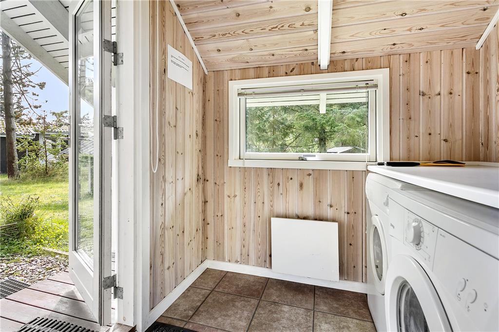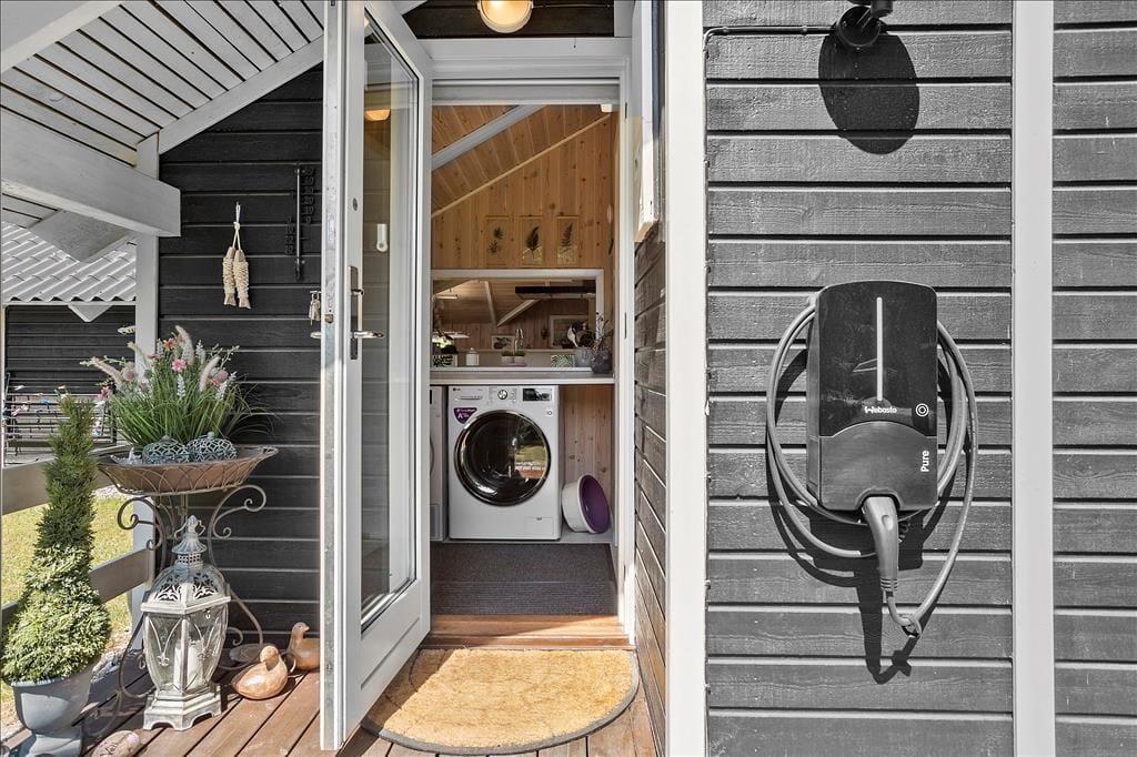 Indgang til en lille god entré som indeholder en vaskemaskine og en tørretumbler. Videre gang i huset kommer man til 1 af husets 4 værelser, og endnu videre kommer man til det flotte og lyse køkken, som ligger i delvis åben forbindelse med stuen. Ved køkkenet ligger 1 af husets 2 badeværelser, hvor dette indeholder en brusekabine og et WC.