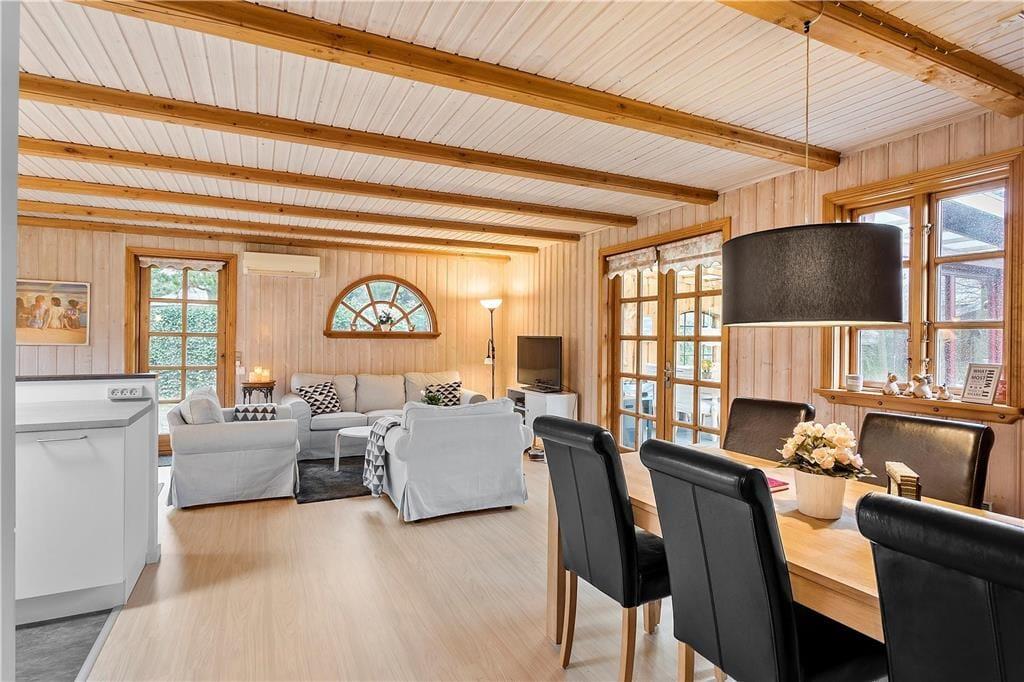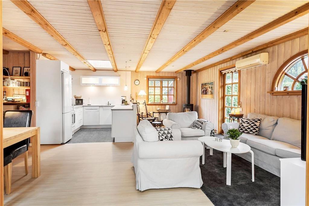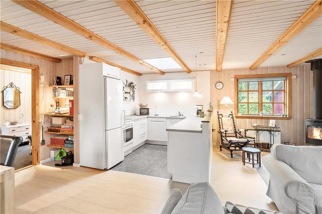 Videre gang i huset kommer man til køkkenet, som indeholder alt hvad der til ferien behøves, og ligger i delvis åben forbindelse med stuen, som er opdelt med en spiseafdeling i den ene side, og en sofaafdeling i den anden side. Fra stuen går man videre ud i den dejlige havestue, som indbyder til masser af hygge og spil, og også indeholder et bordfodboldbord.
