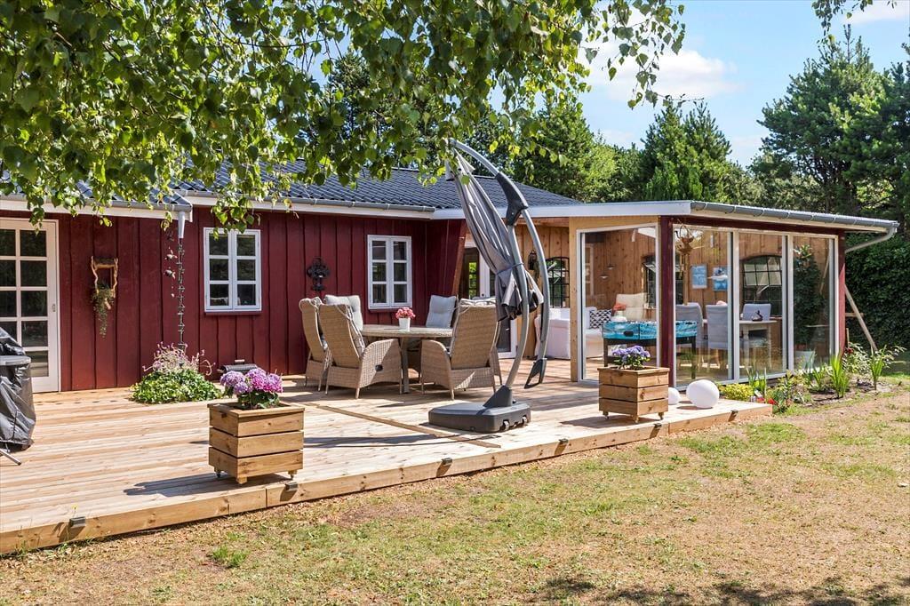 Beliggende på en rigtig flot anlagt grund, med en dejlig have med mange små hyggekroge, og en skøn terrasse, hvor sommeren rigtig kan nydes.